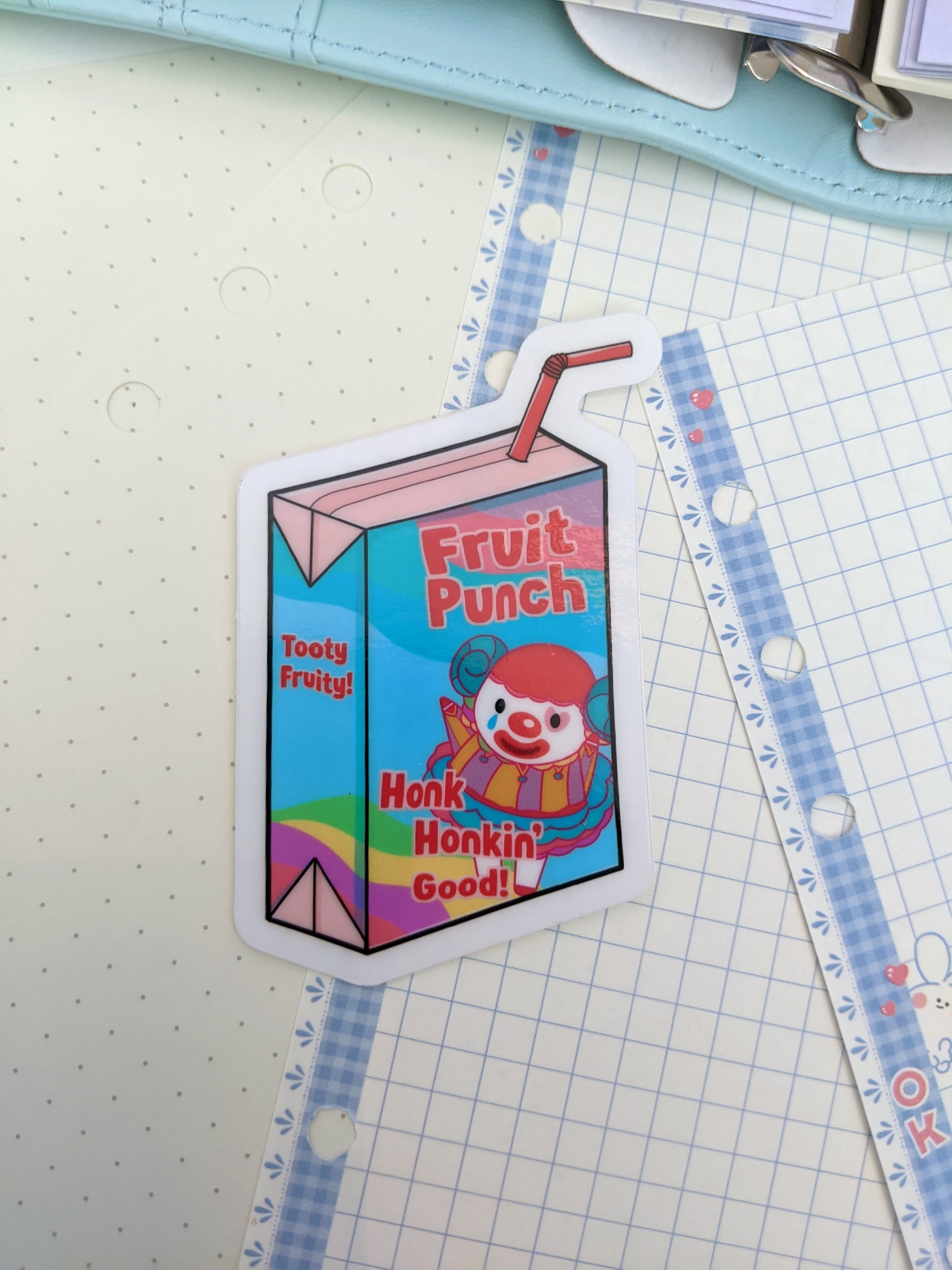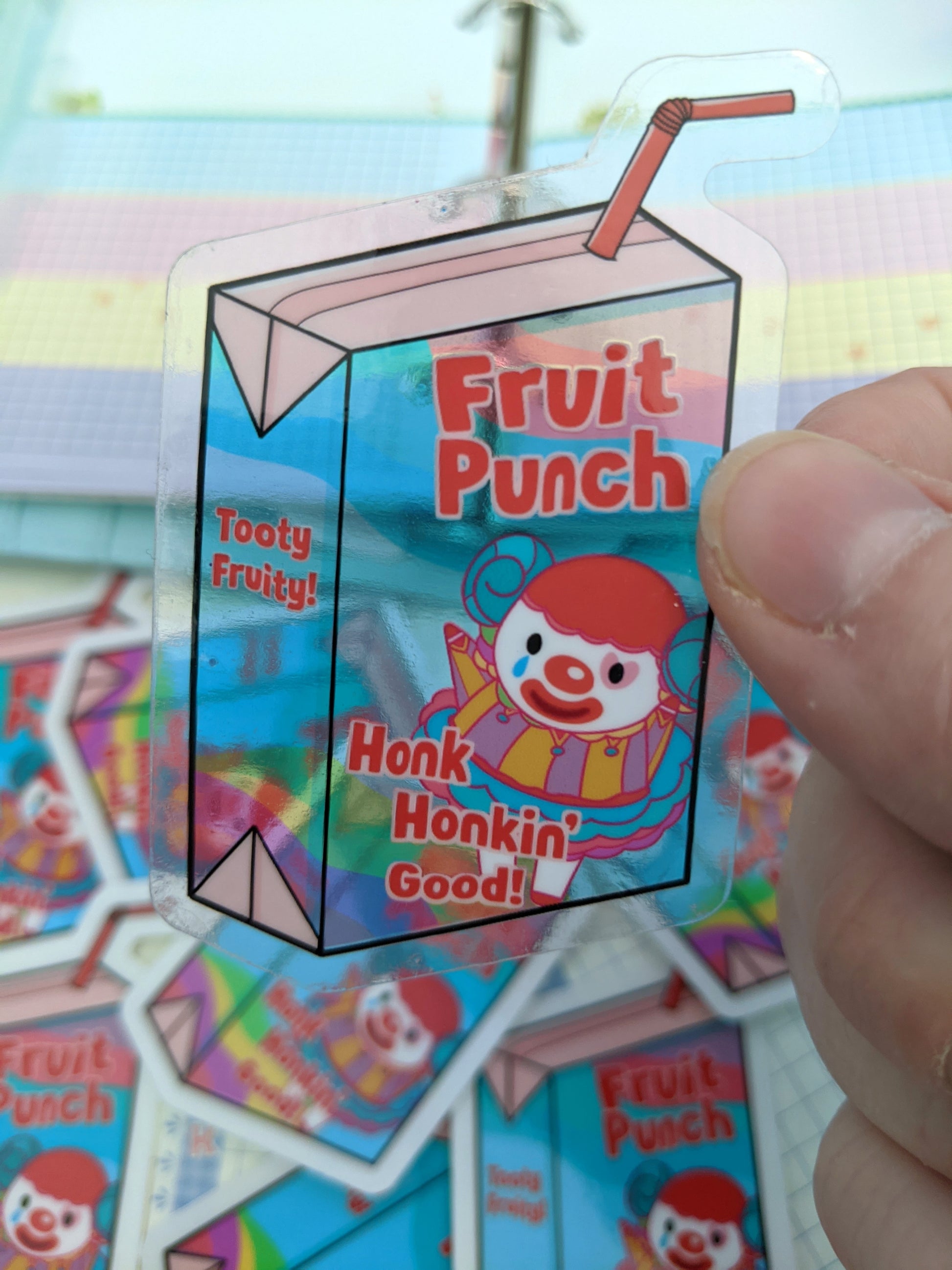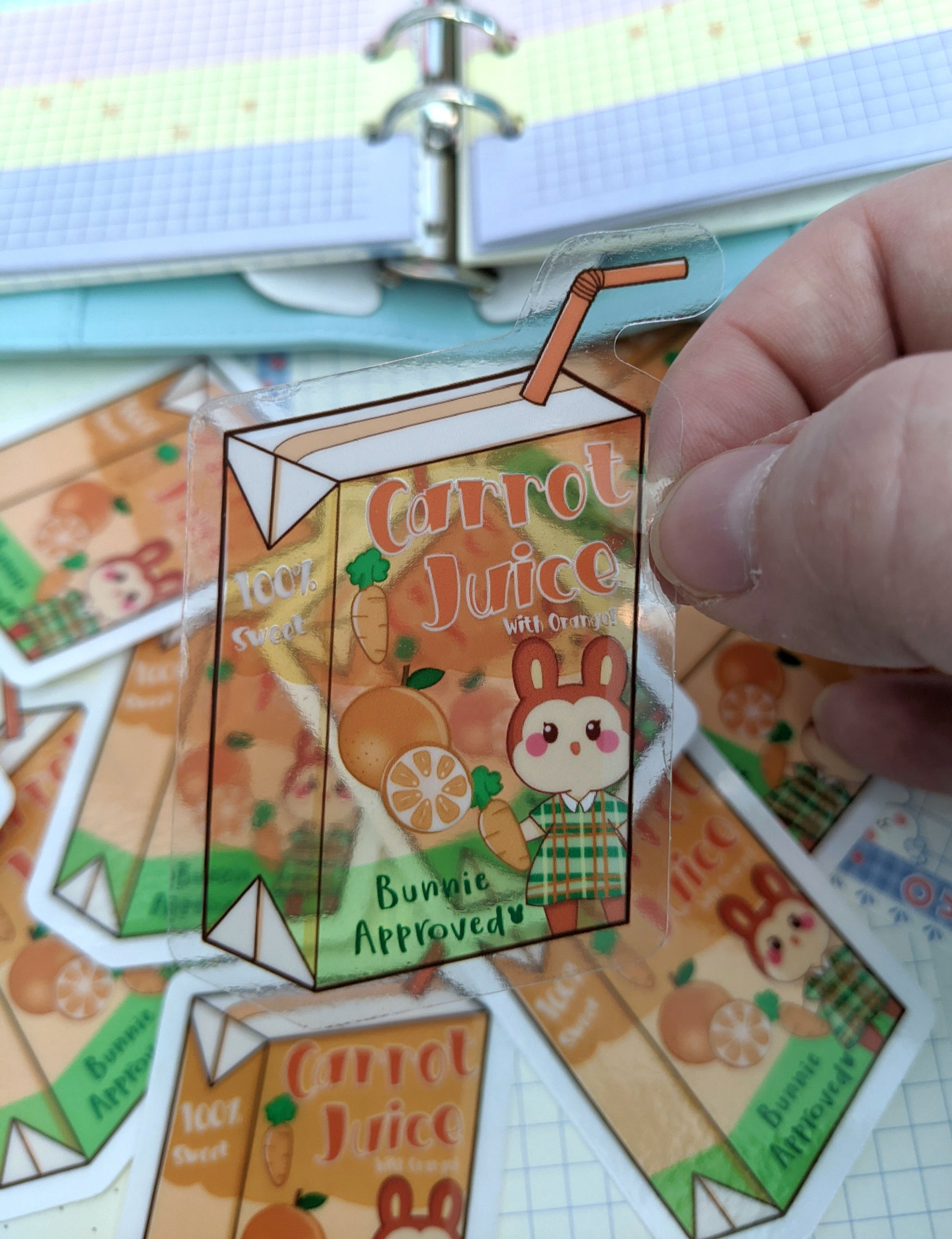 Clear stickers are 2.5," have a clear border, and inside the juice box is transparent!
