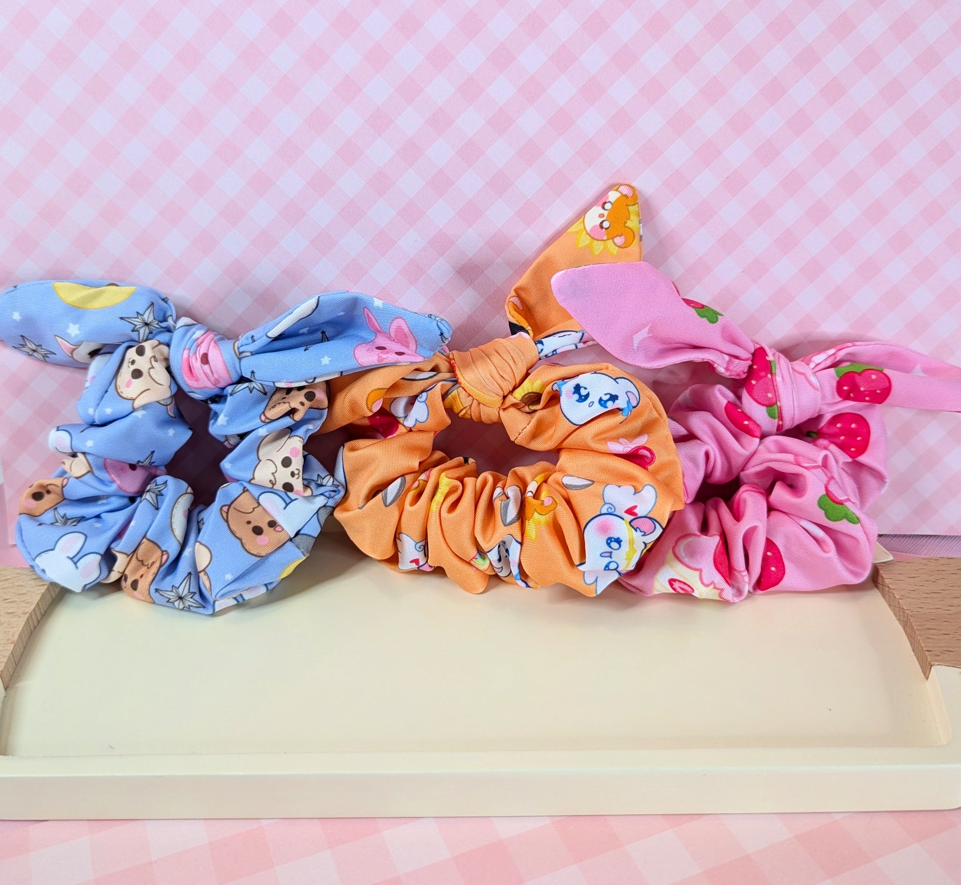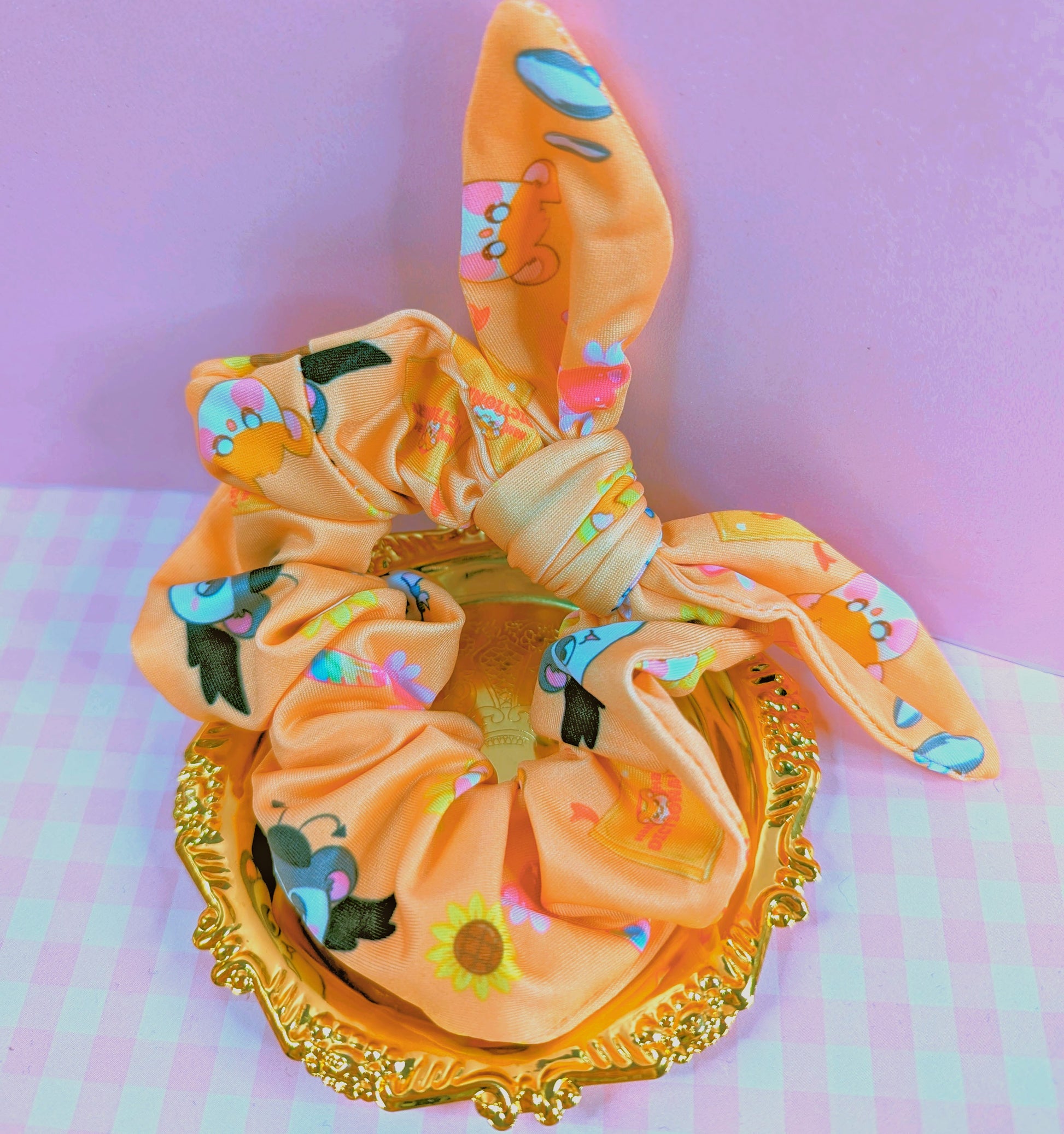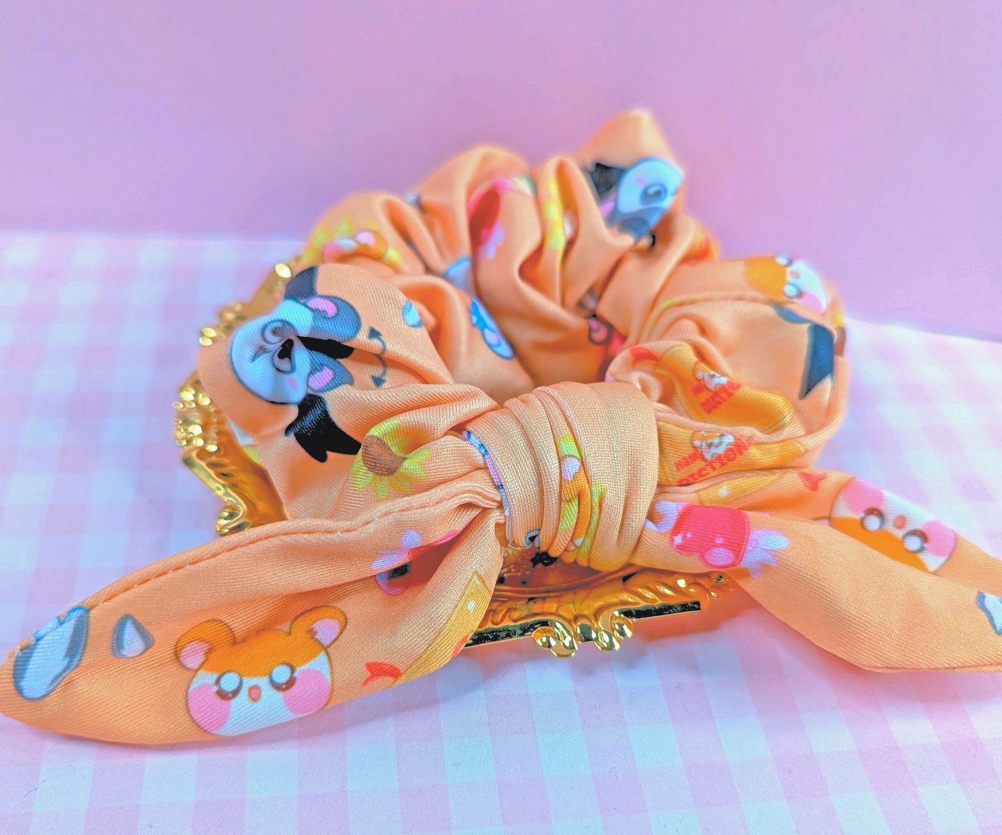 This super cute scrunchie is printed on soft polyester fabric, and filled with elastic!
