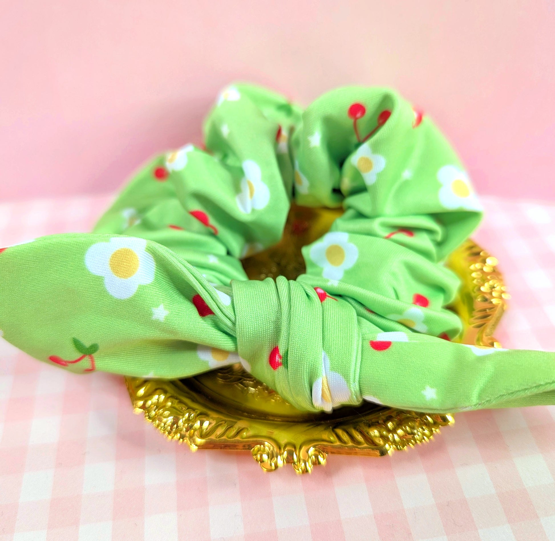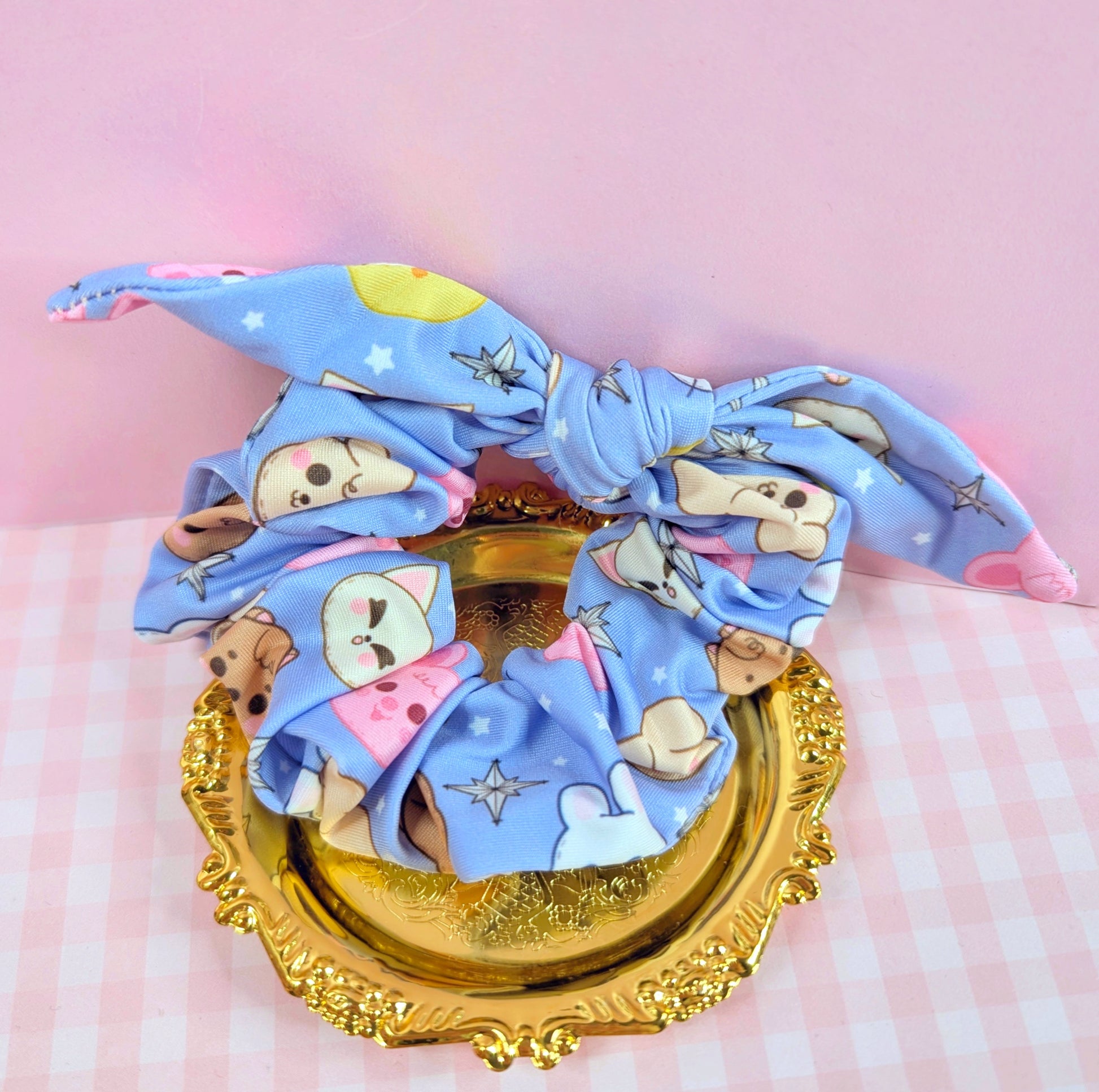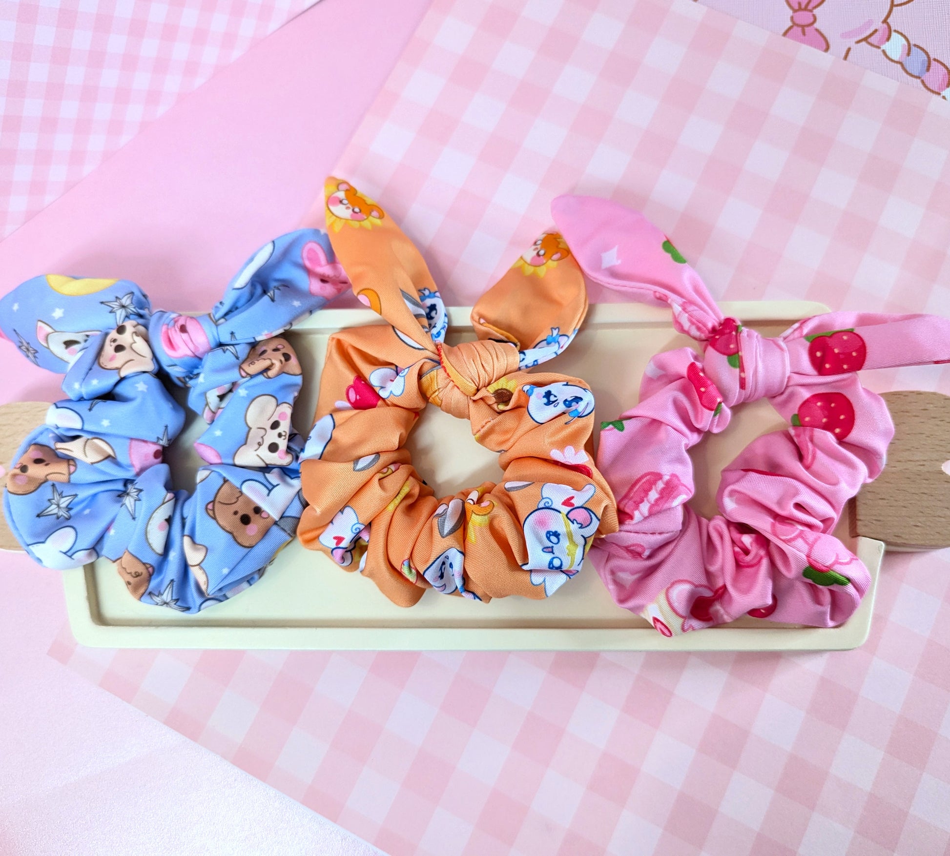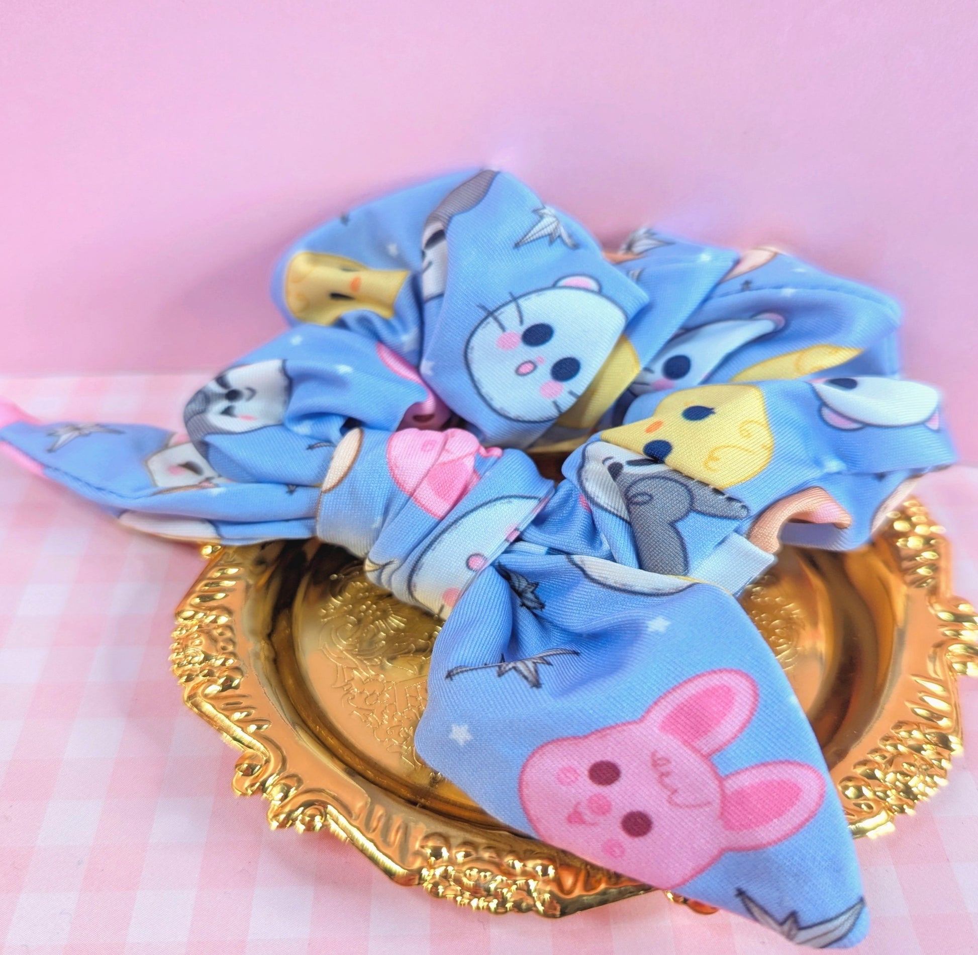 This super cute scrunchie is printed on soft polyester fabric, and filled with elastic!