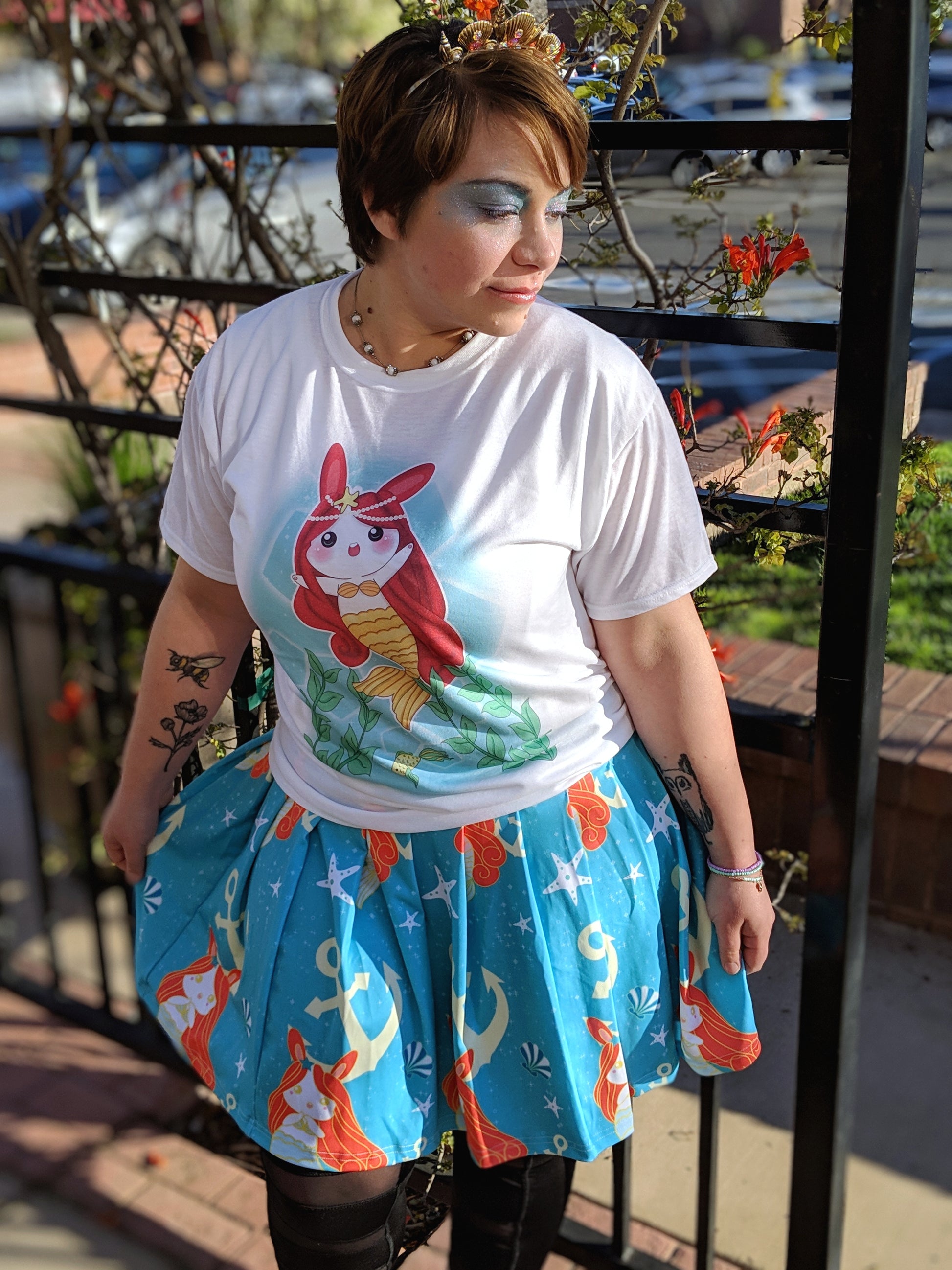 Introducing the Merbunny Pleated Mini Skirt! This skirt is 90% polyester and 10% spandex. Dyed using an advanced sublimation technique, this skirt is super vibrant and has just the right amount of stretch!
