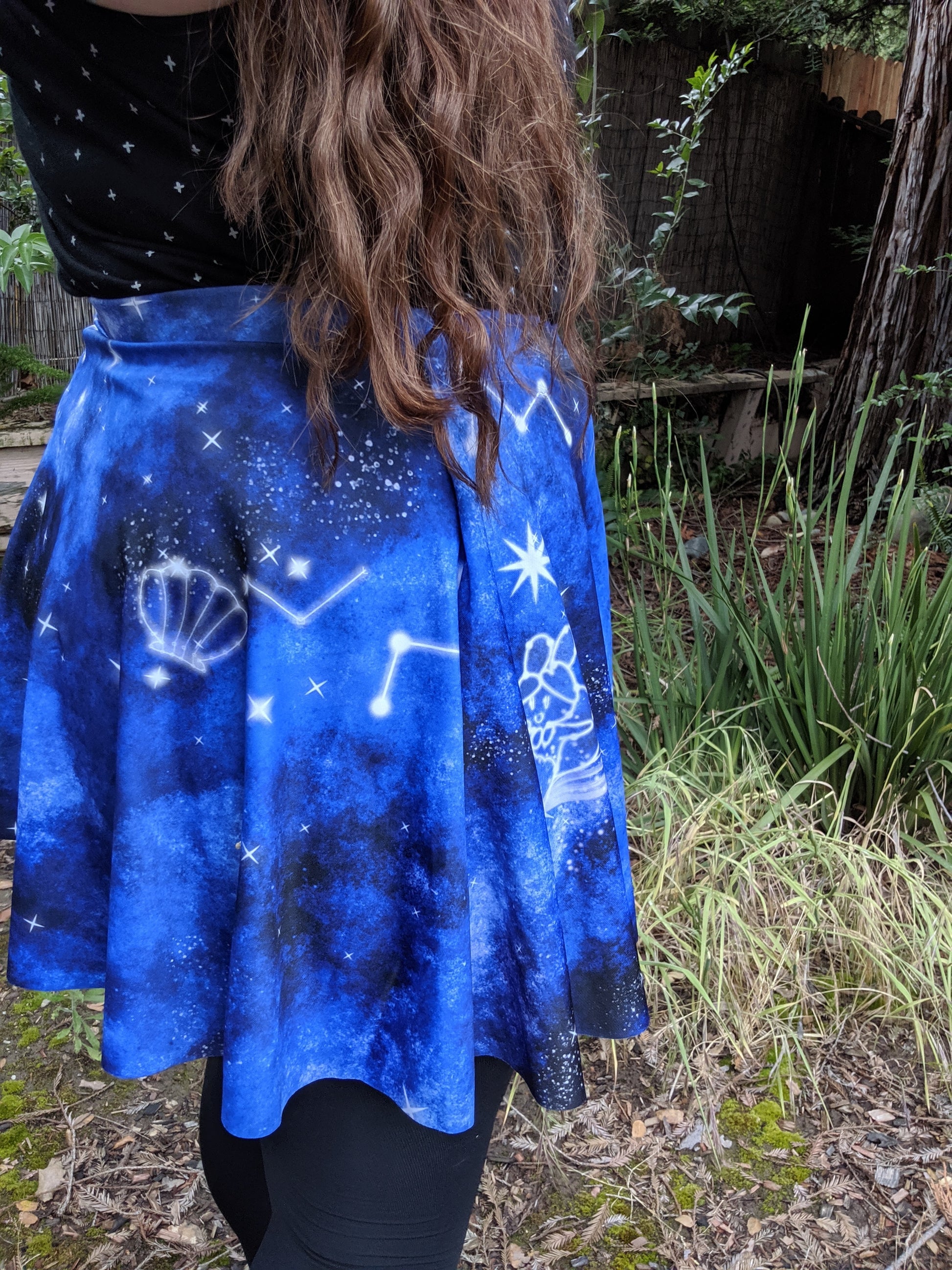 A-Line Pleated Pocket Skirt, featuring an original Starry Night Galaxy Design with constellation Merbunnies.