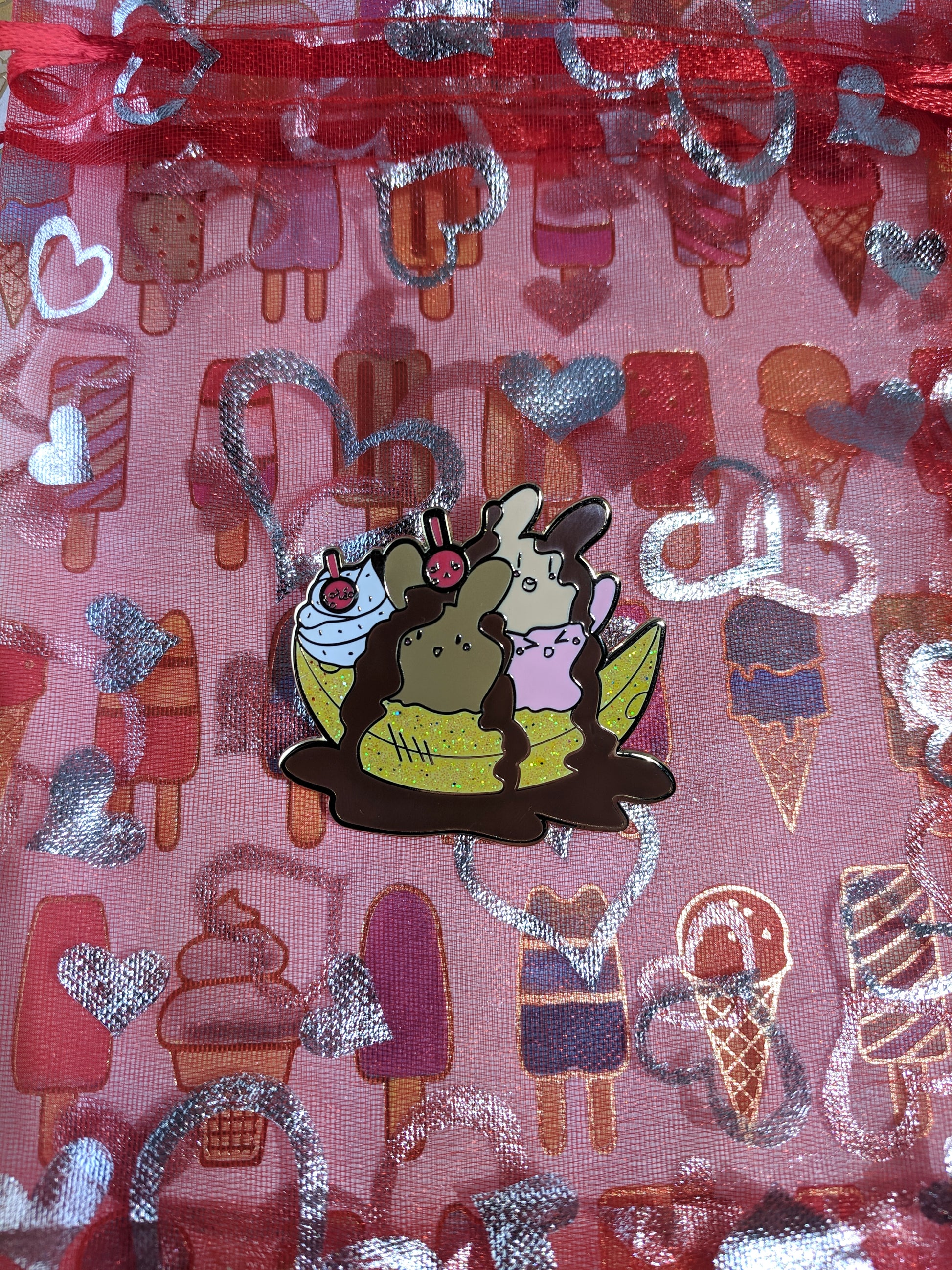 What's better than bunnies and ice cream? A Bunana split! This pin us 1.75" and has yellow glitter on the banana