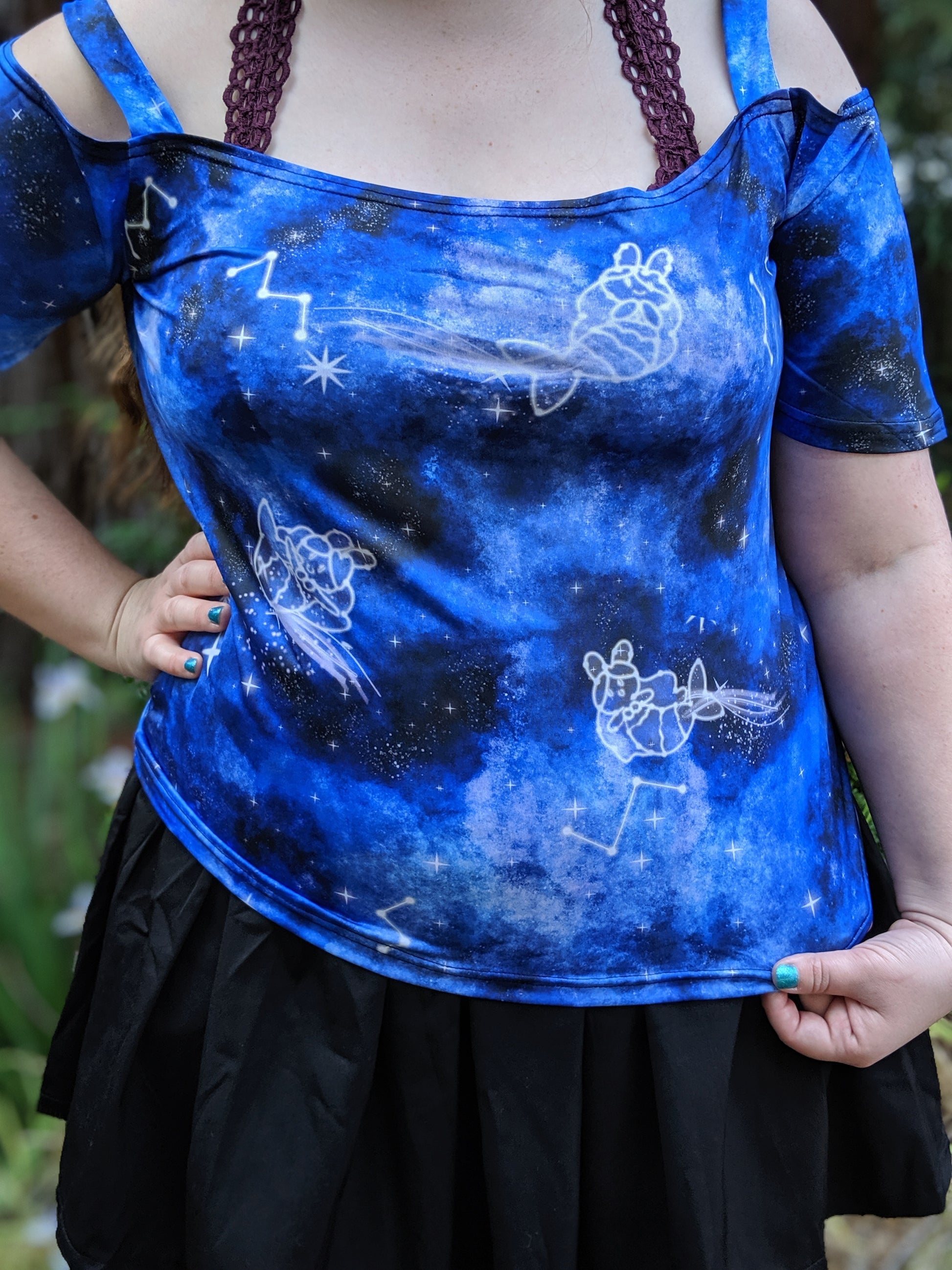 Shirts are all over printed with a different design on the front and back for a unique kawaii look.