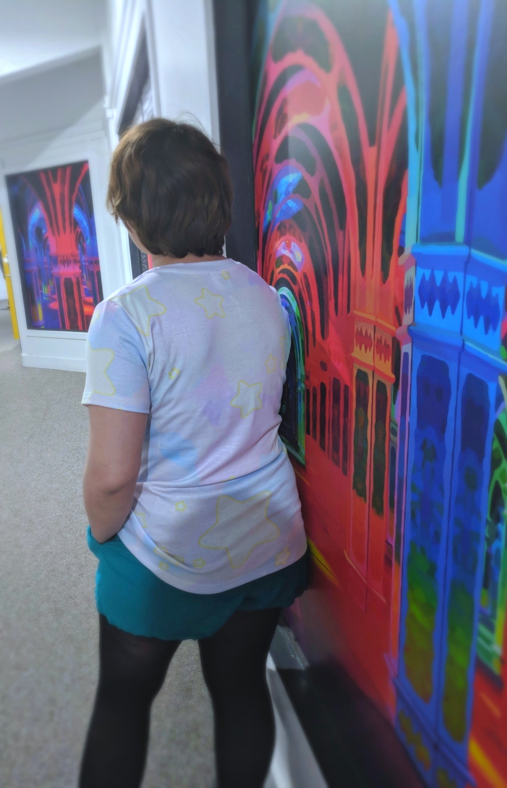 Material: Shirts are *sublimated on a mix of cotton and polyester. (90% cotton and 10% spandex.) Model is wearing a size Large. *Ink is dyed into the fabric for a brighter more vibrant look.
