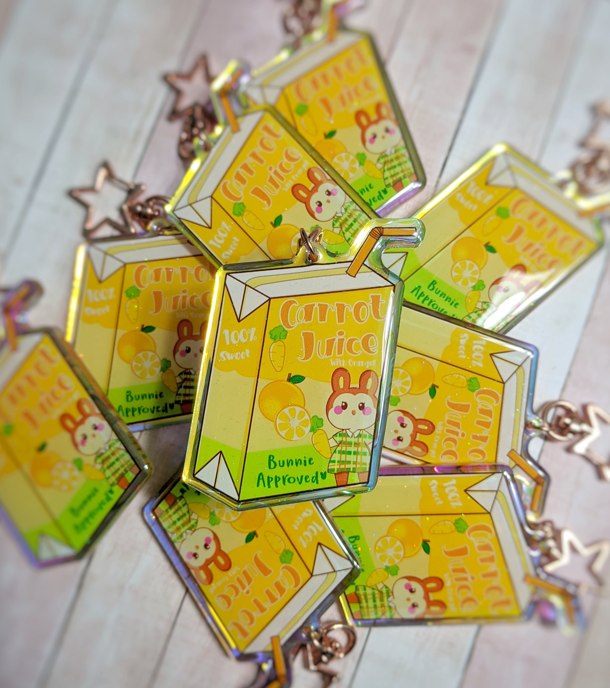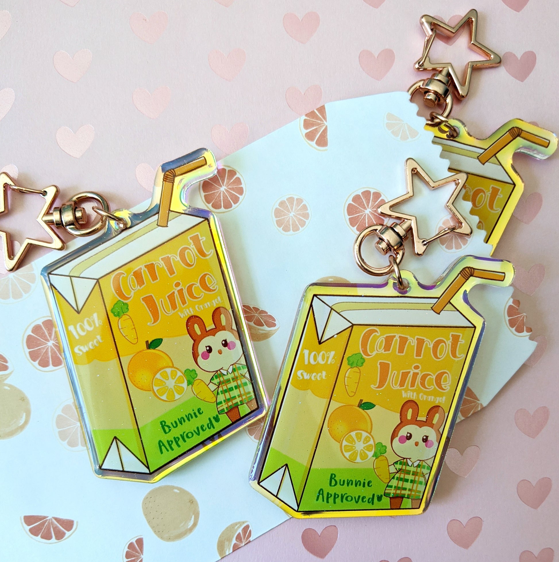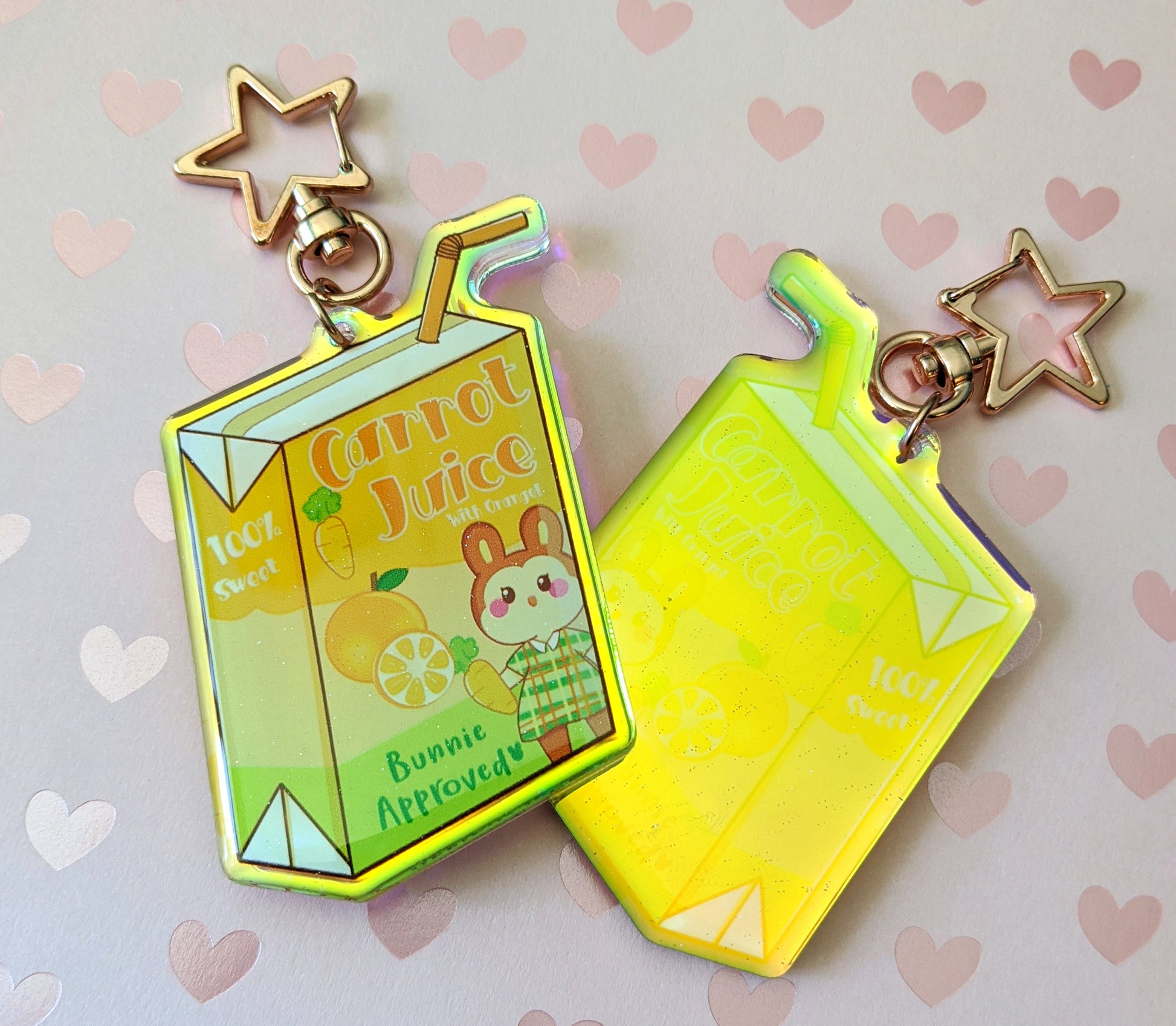 Kawaii AC inspired juice box charms featuring Pietro and Bunnie! With rainbow holo!