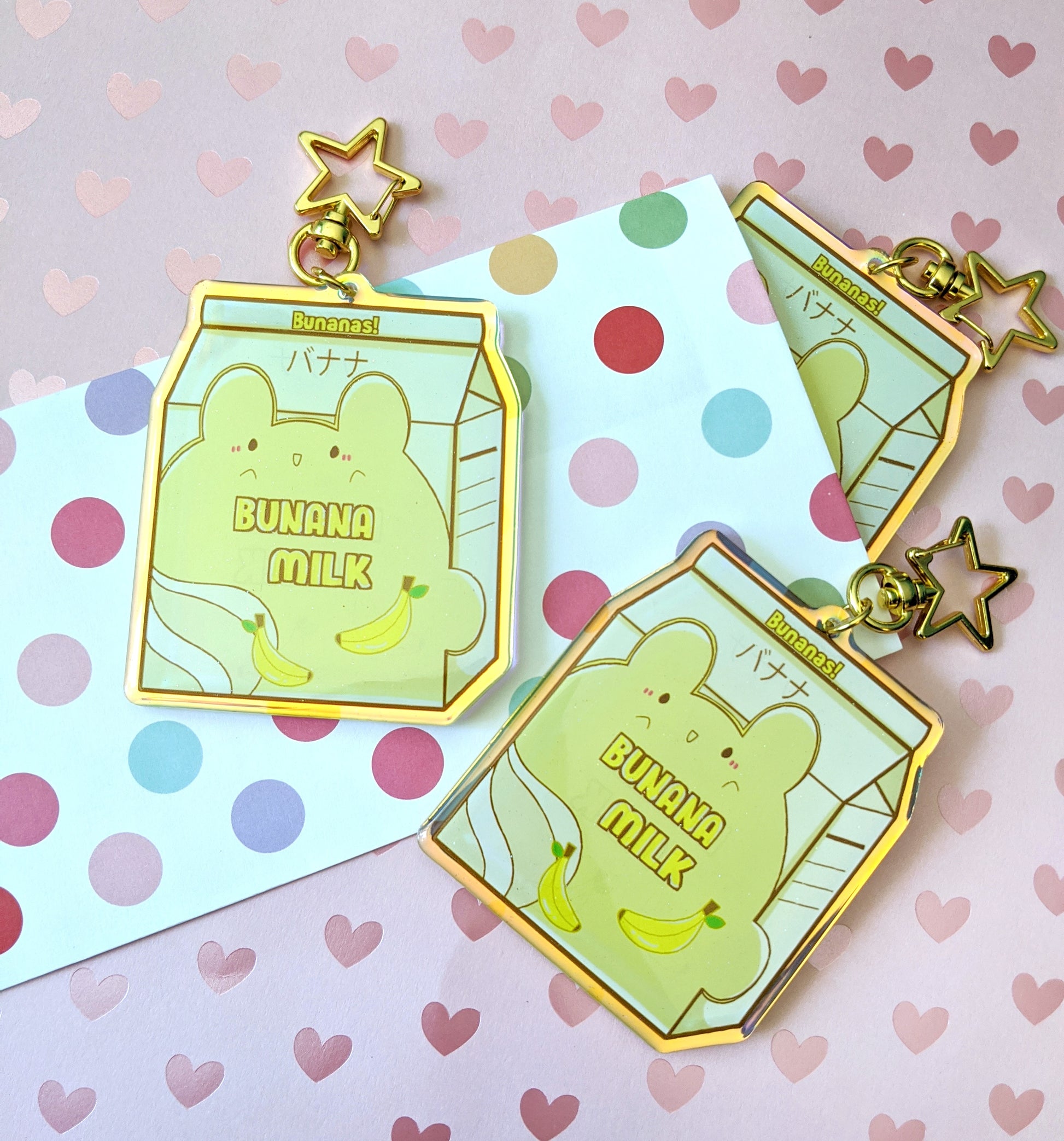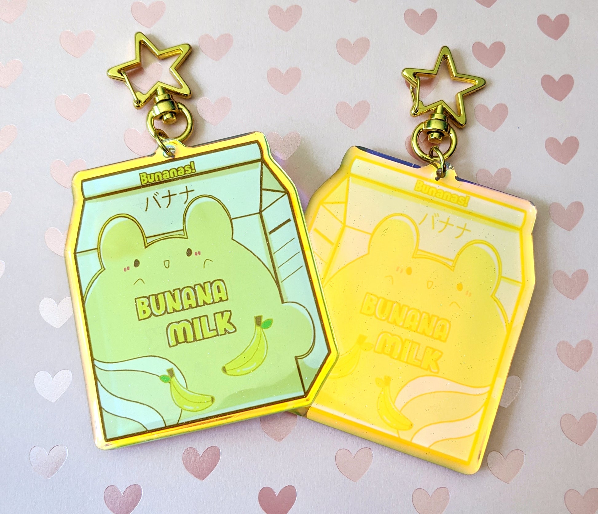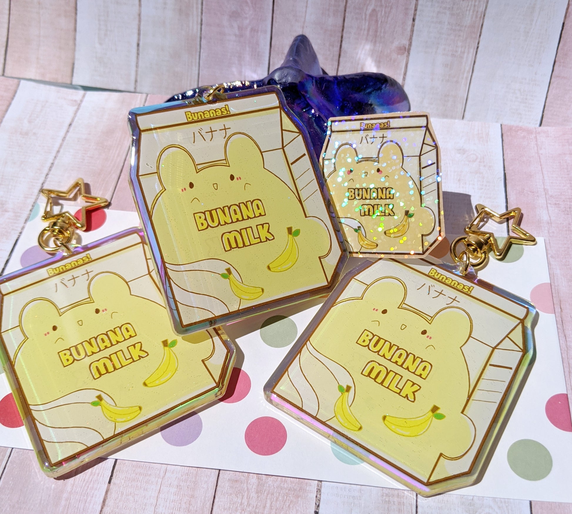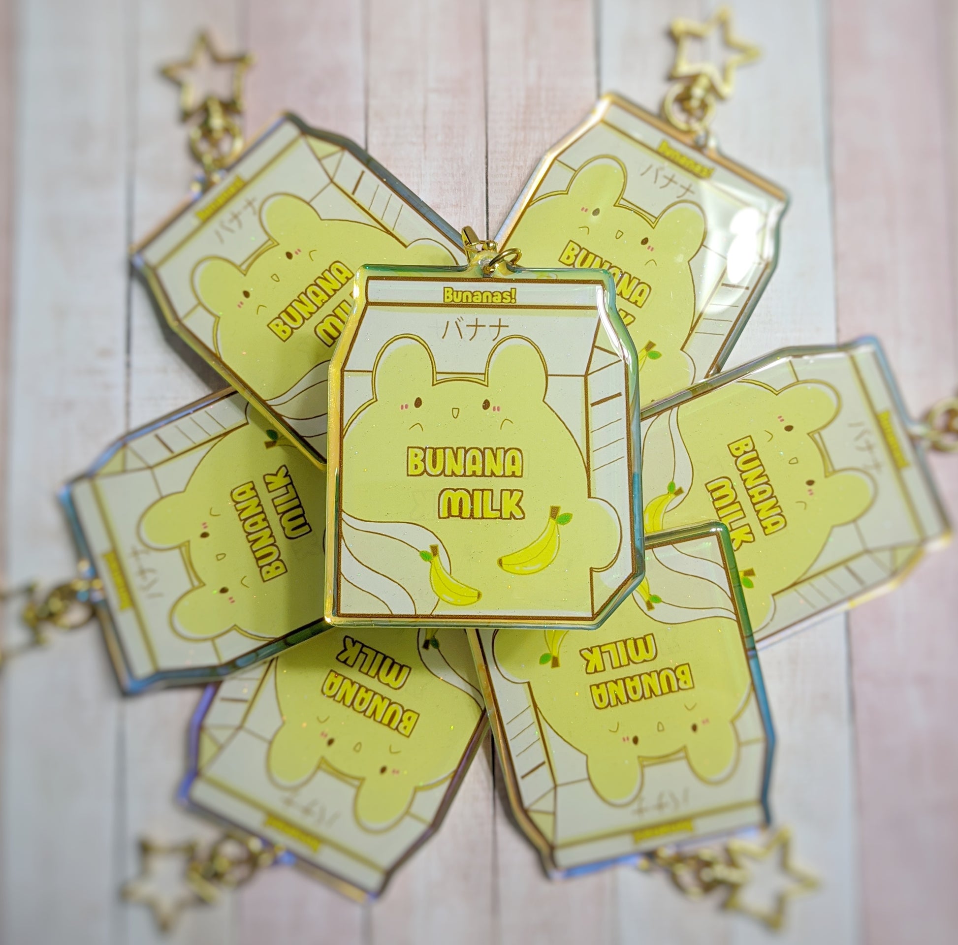 Kawaii Original Bunana Milk Charm, with rainbow holo!