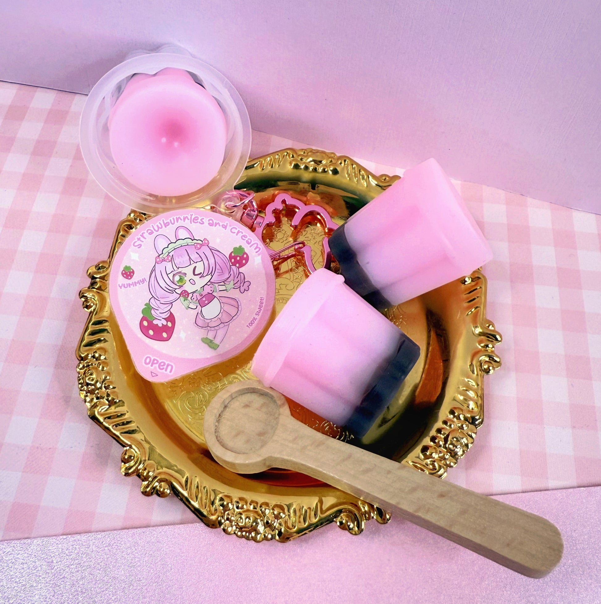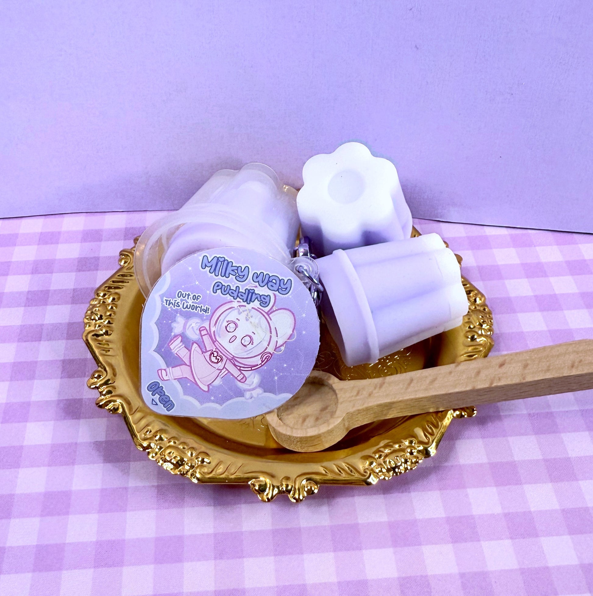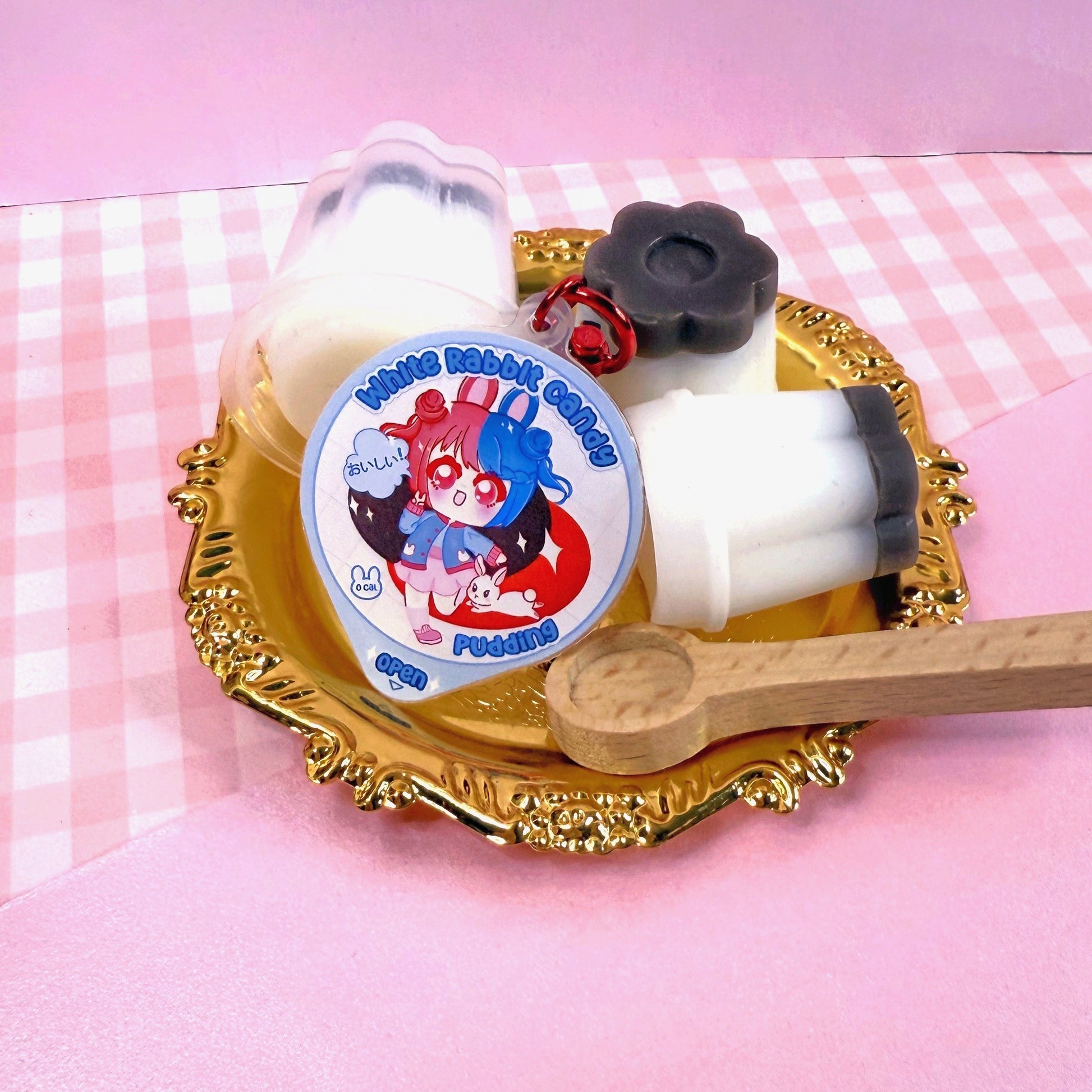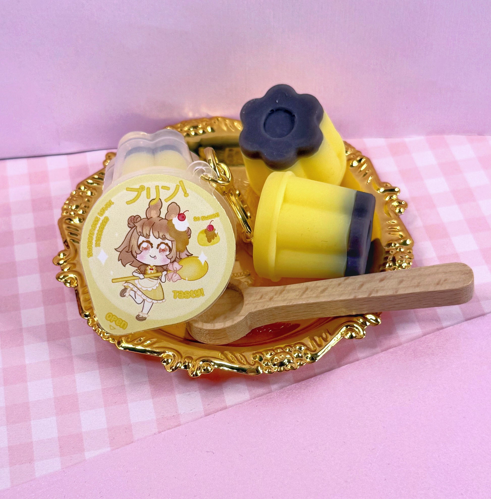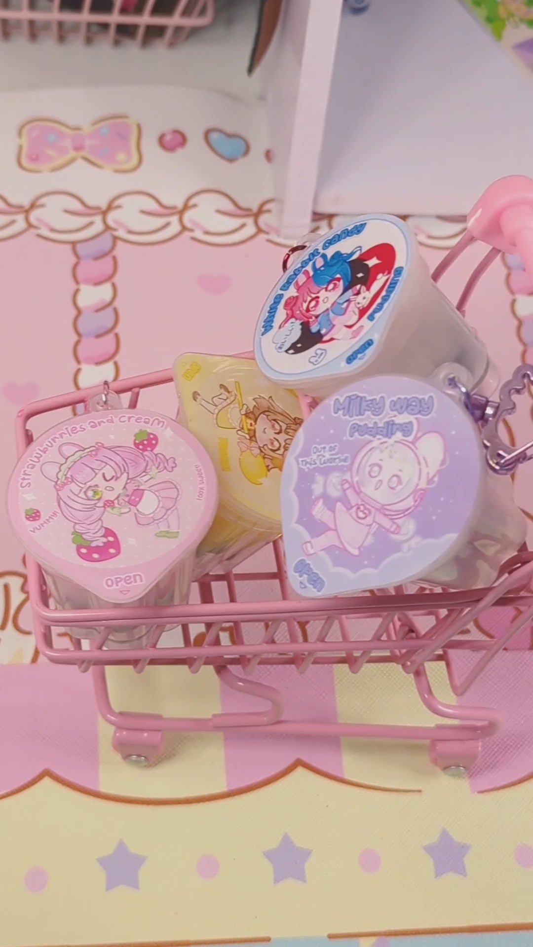 These new pudding cups charms are some of my favorite products to have gotten made! Each charm comes in a little tiny pudding cups, with a design on the lid and a squishy pudding toy inside!