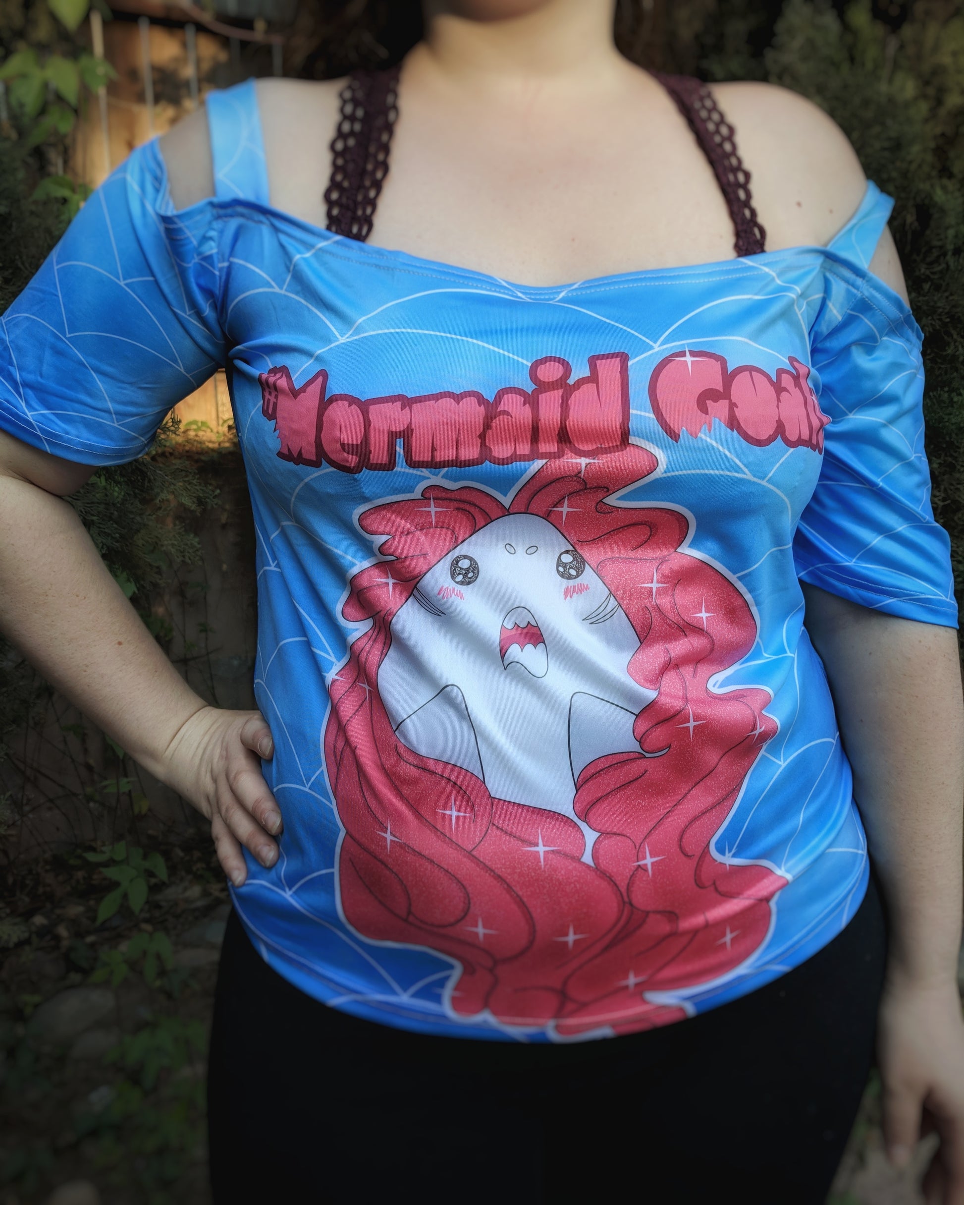 Shark (Mermaid Goals) Summer Over The Shoulder Tee