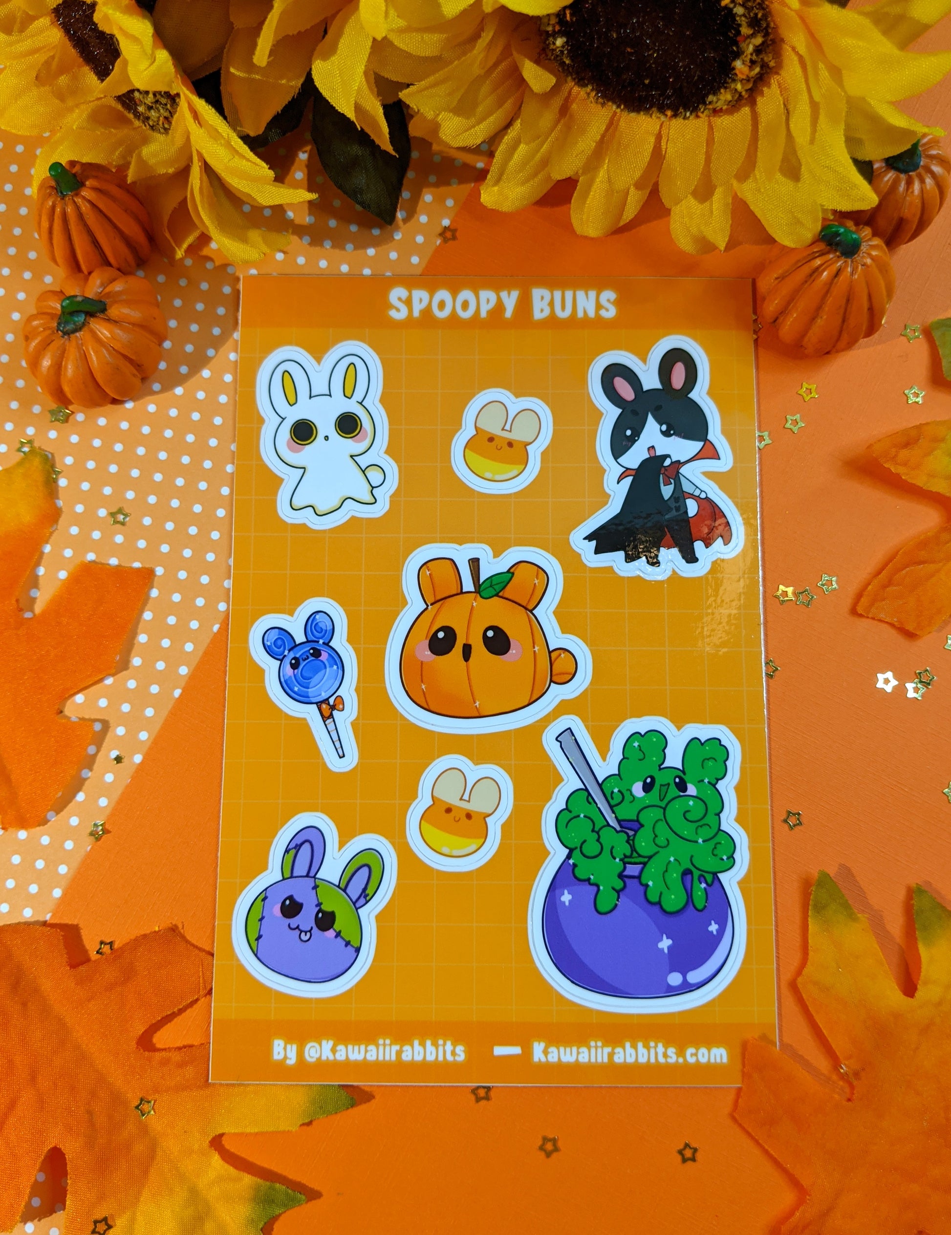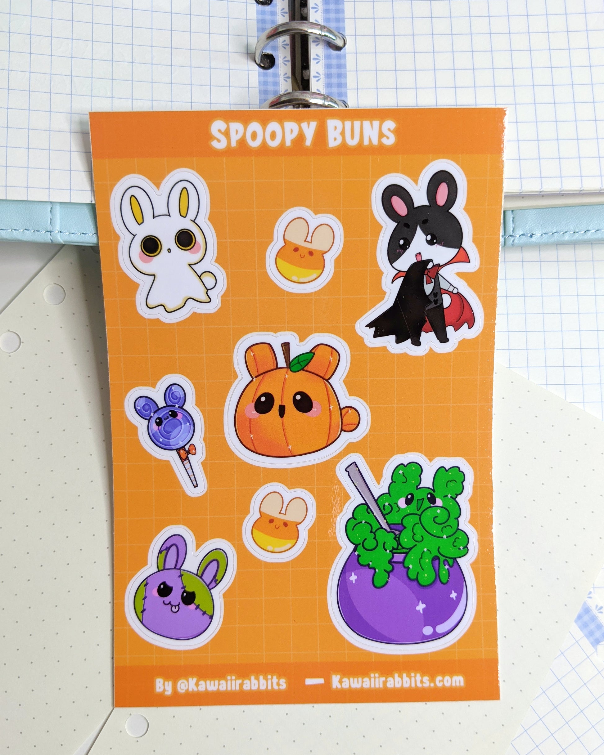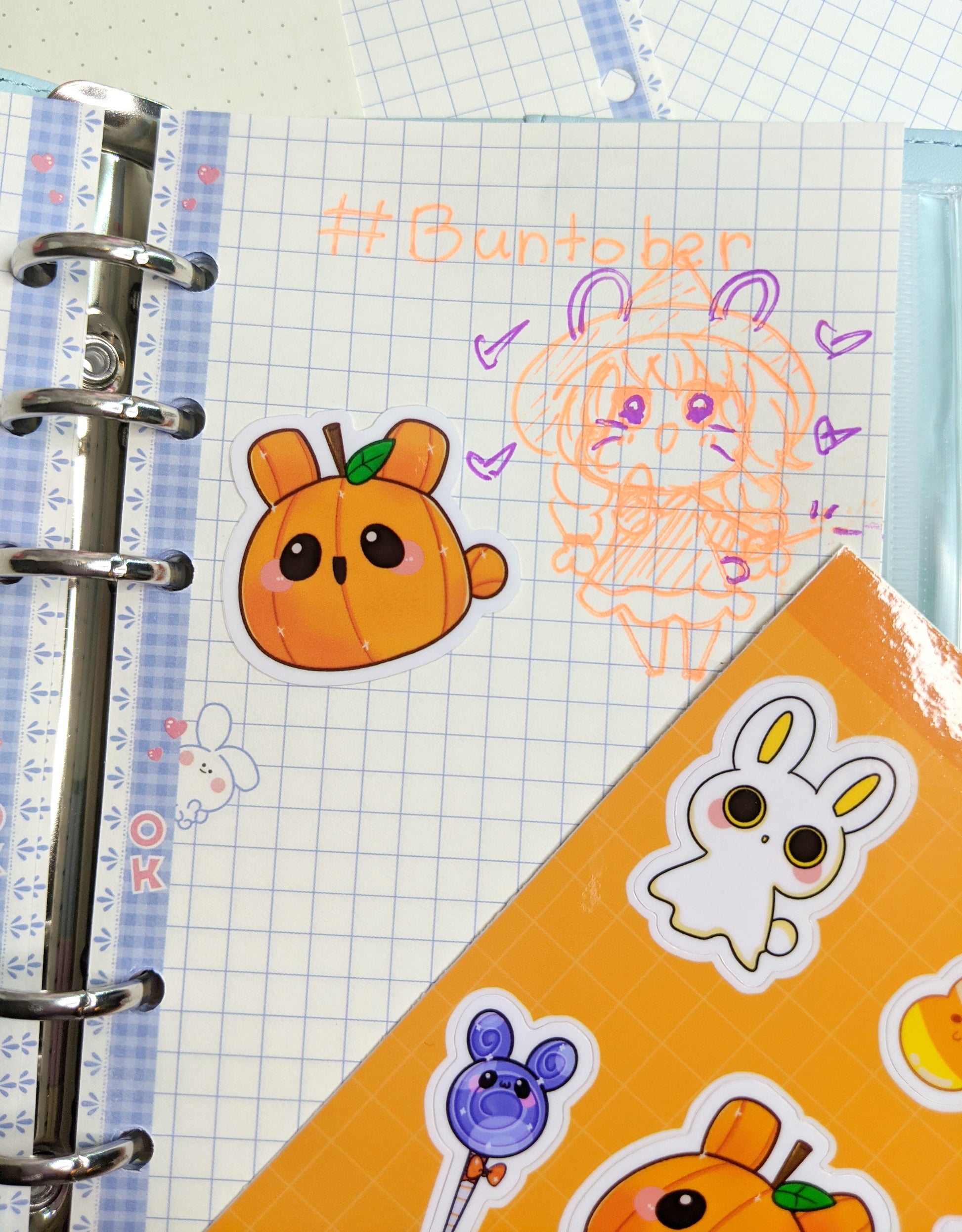 7 original designs on one 4x6 sticker sheet, created from my #buntober drawing prompt! (Head over to instagram.com/kawaiirabbits to see the post, and participate if you'd like!)