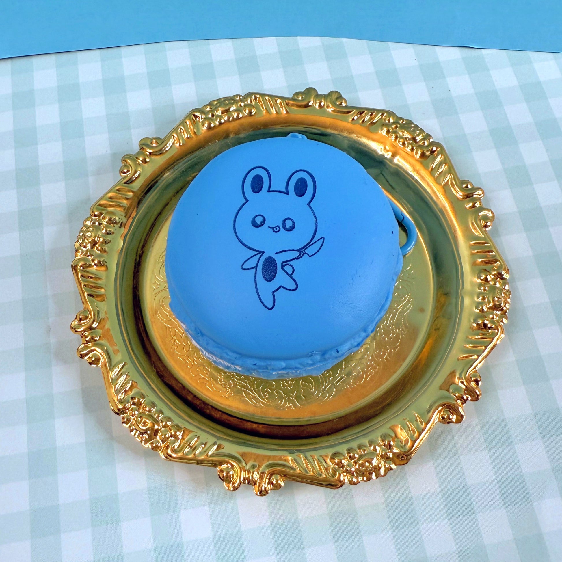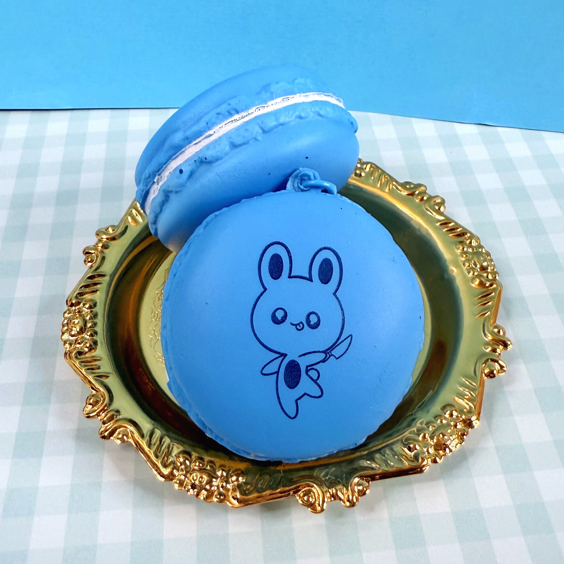 Blue Macaron- Fred the unhinged bunny