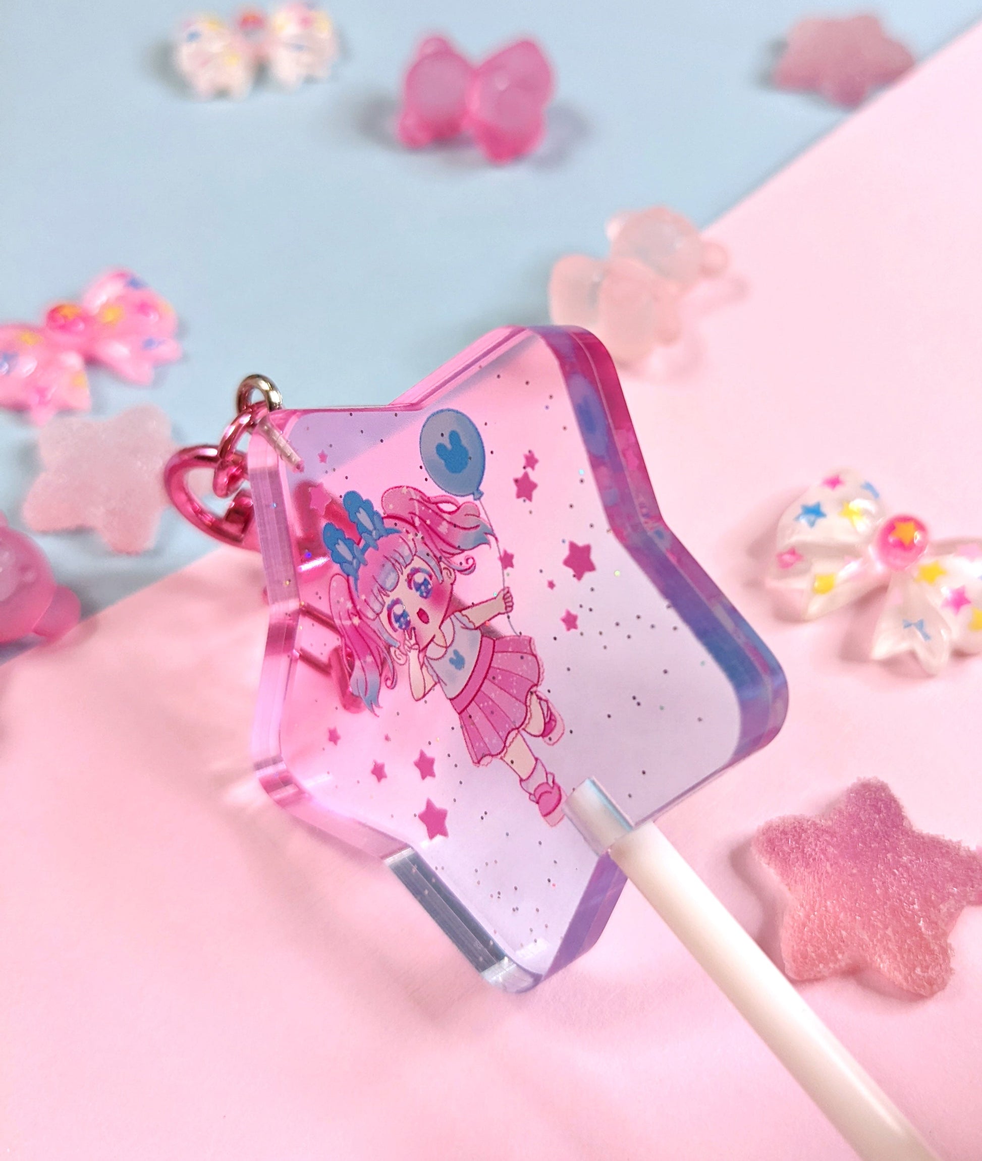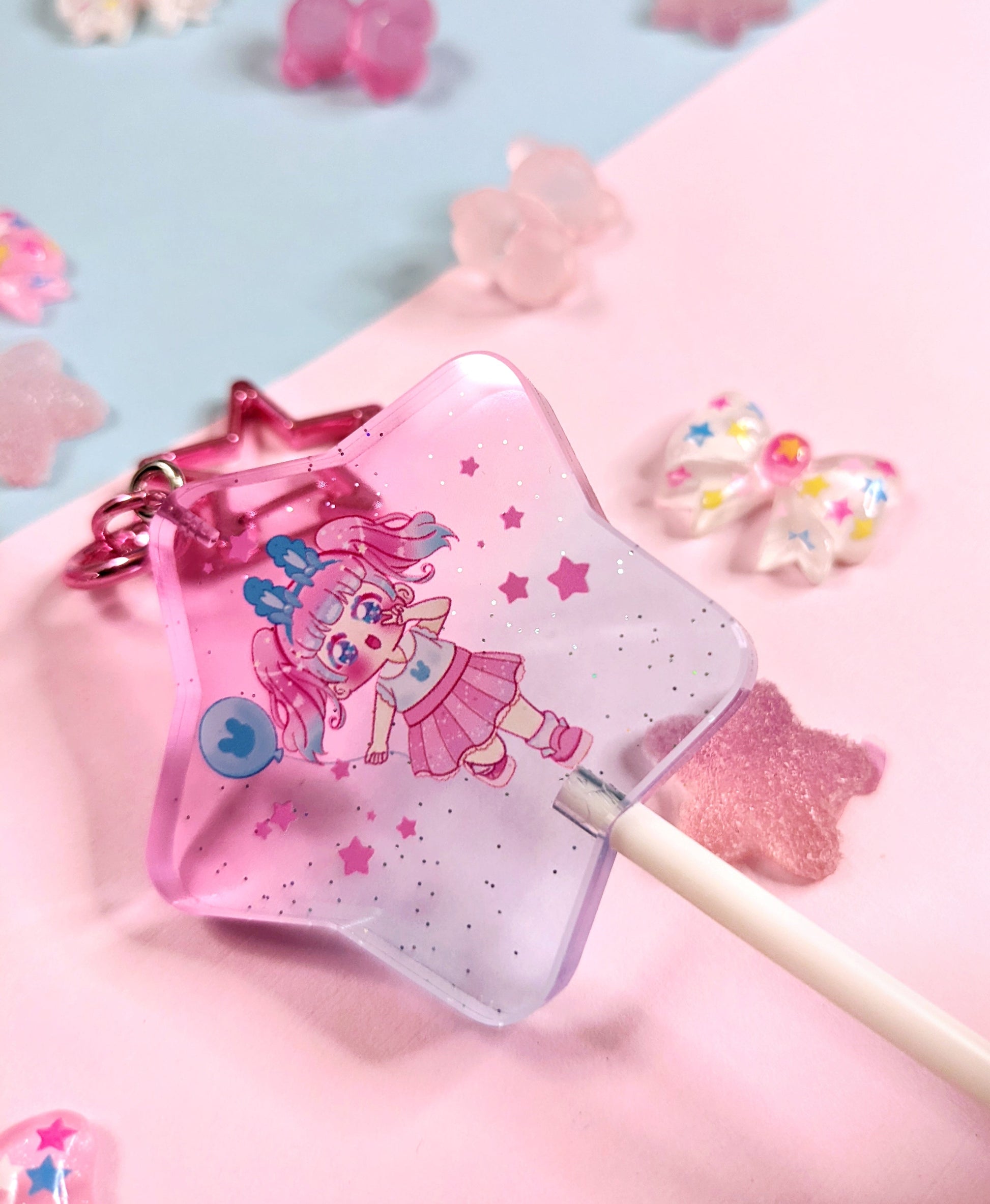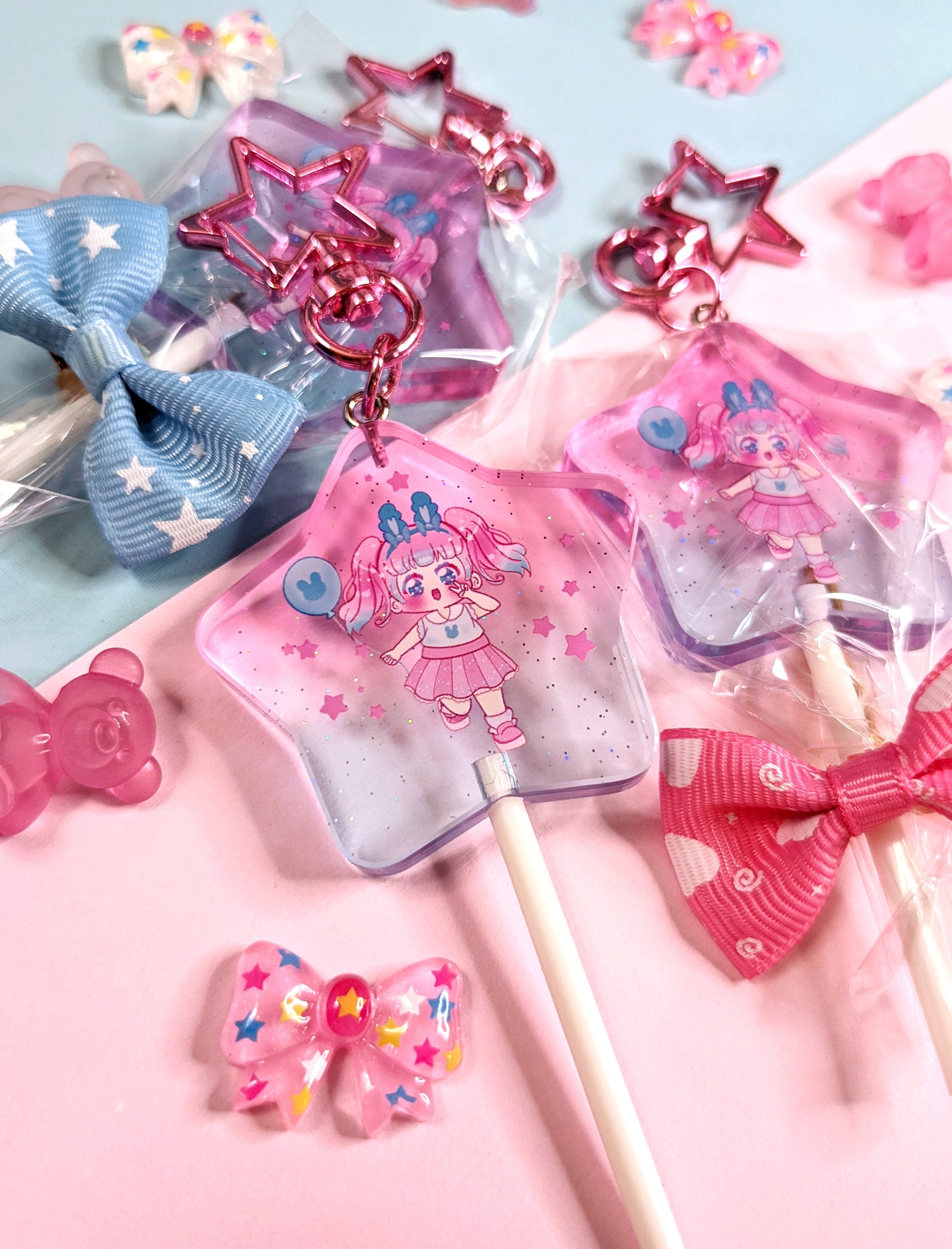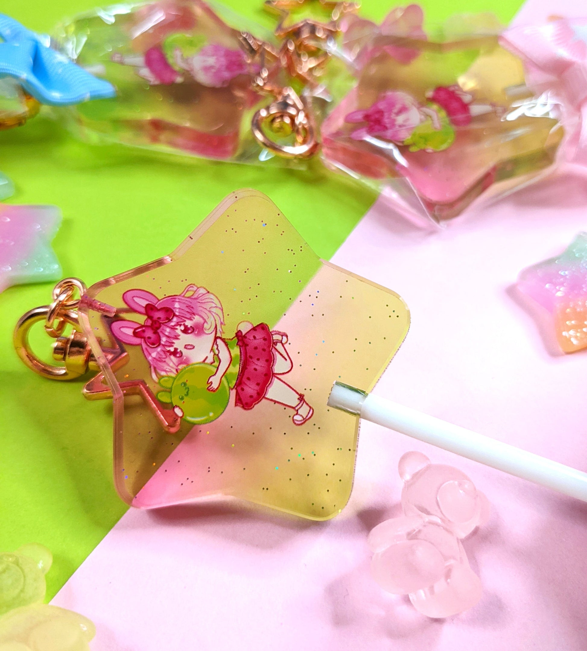 Fruity Star Pops are made of acrylic with a little plastic stick to make it look just like a lollipop!