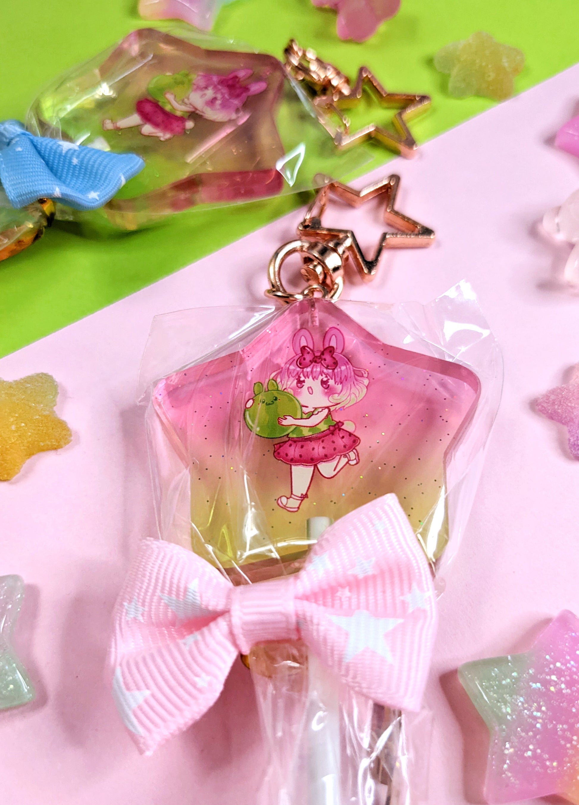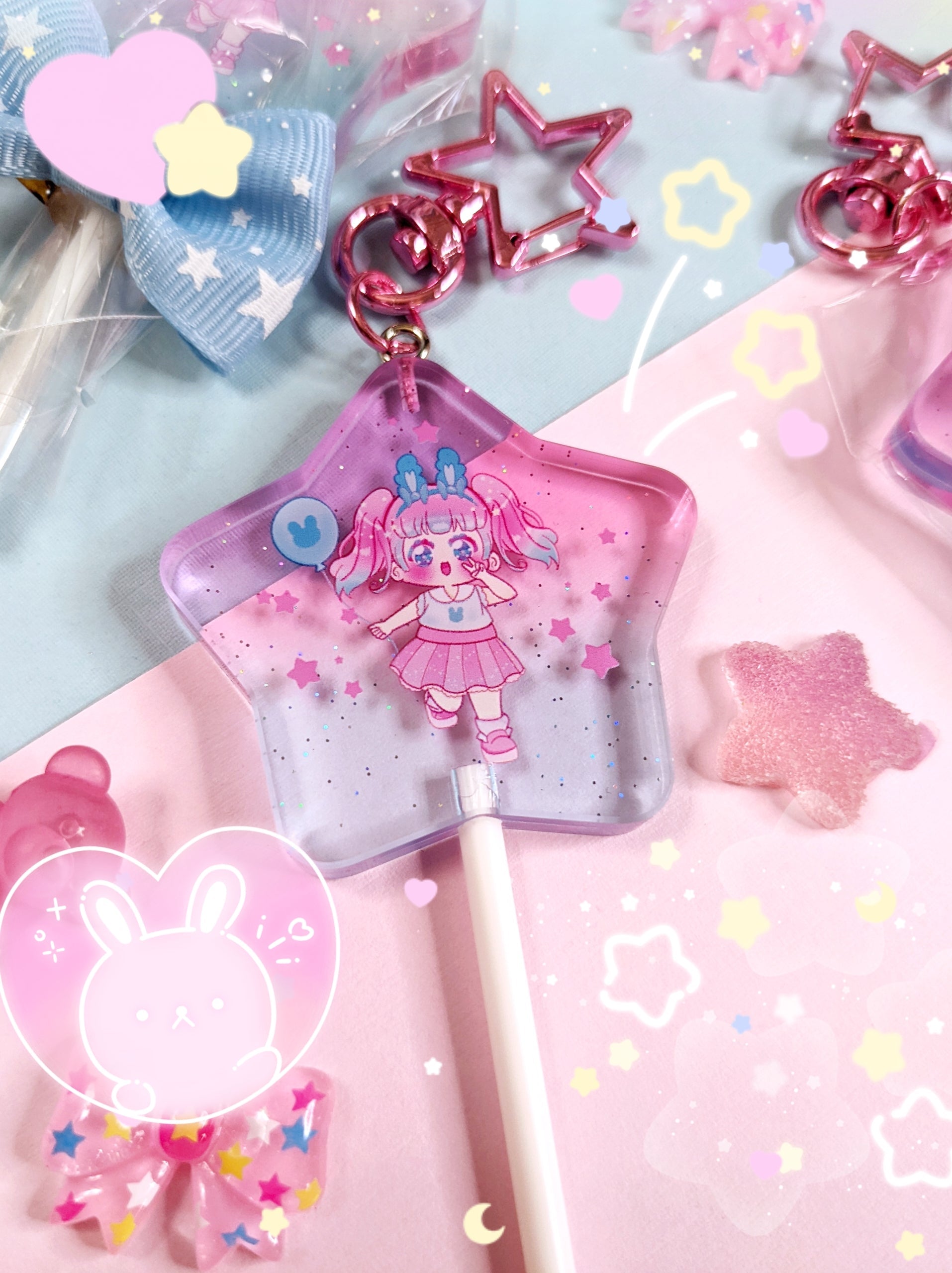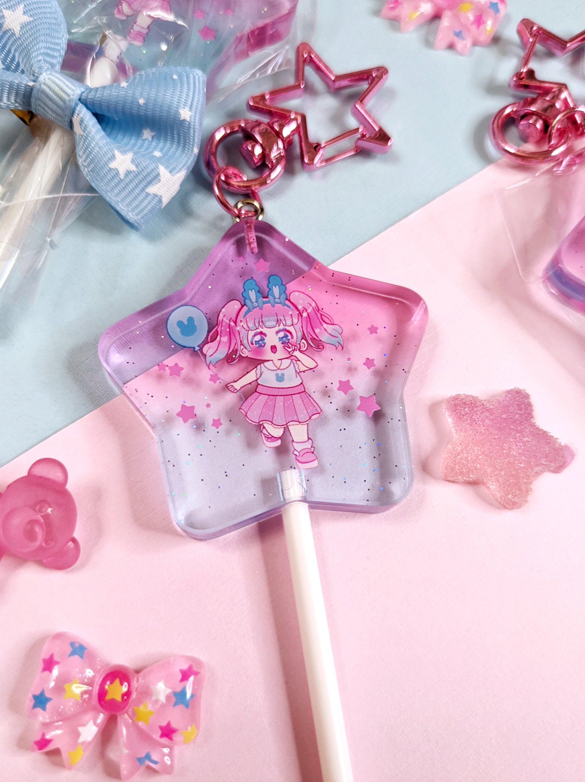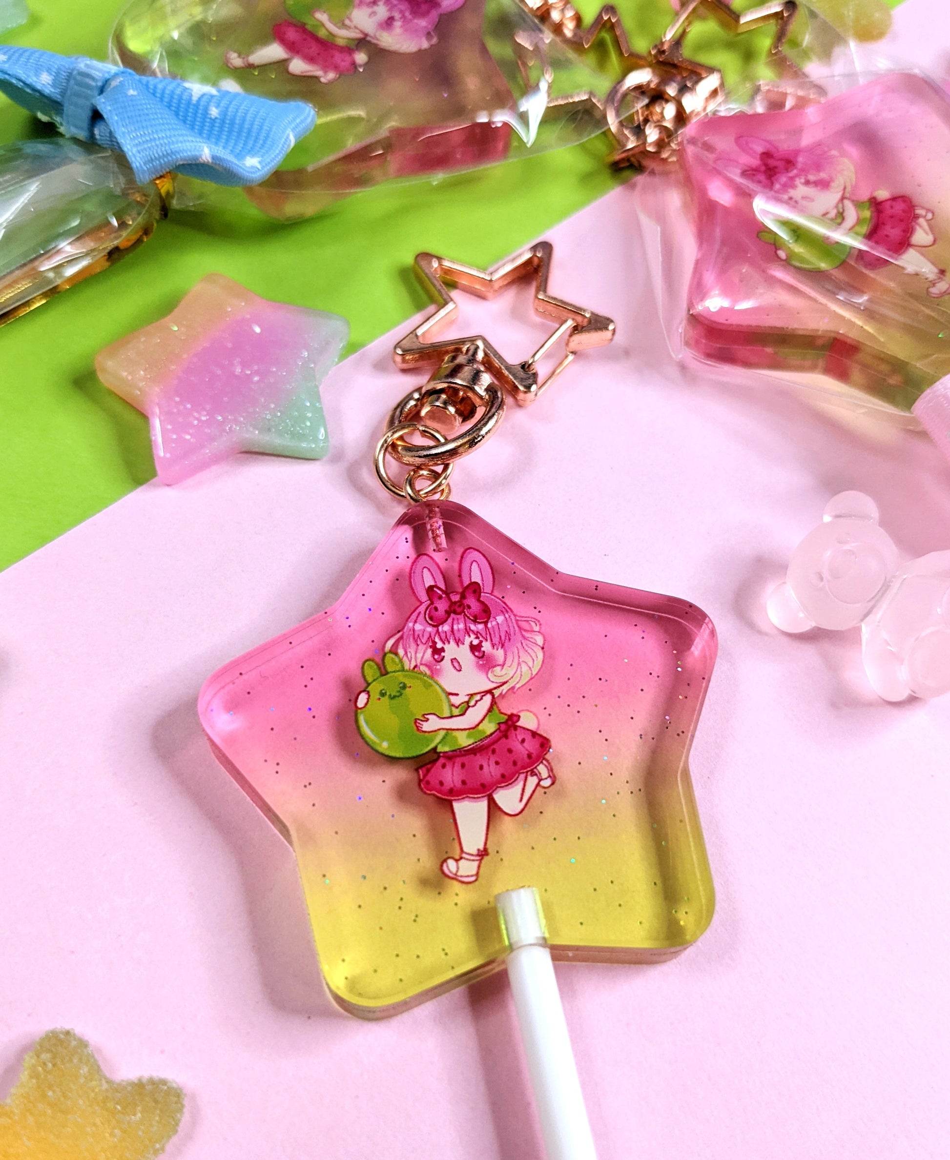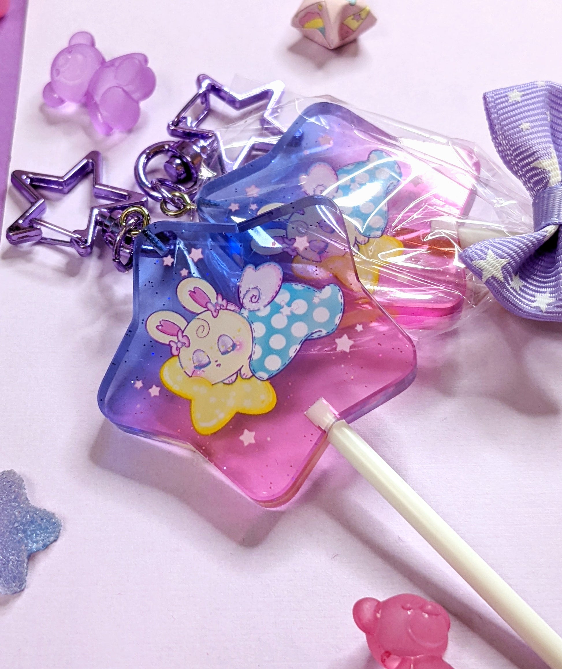 Fruity Star Pops are made of acrylic with a little plastic stick to make it look just like a lollipop!