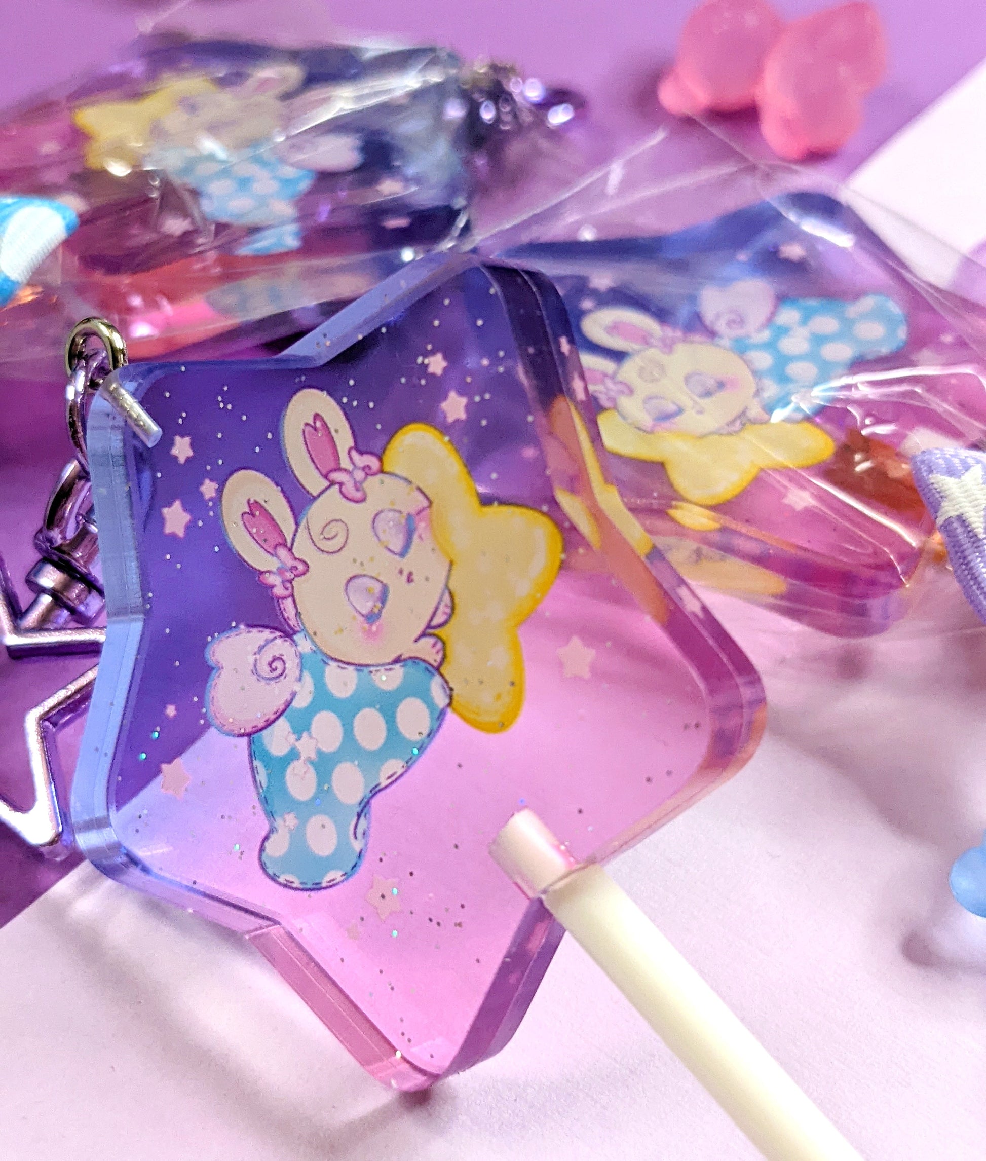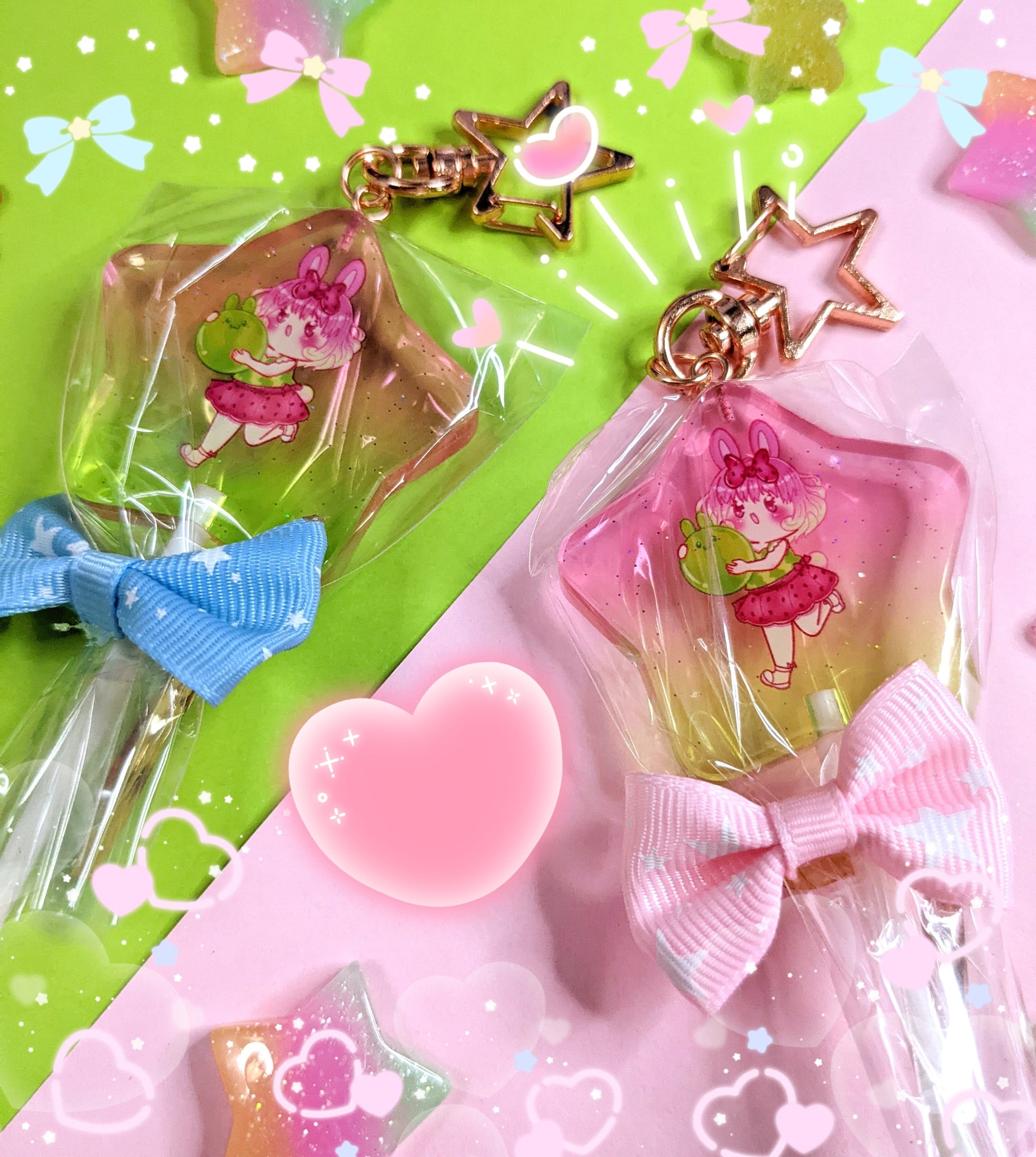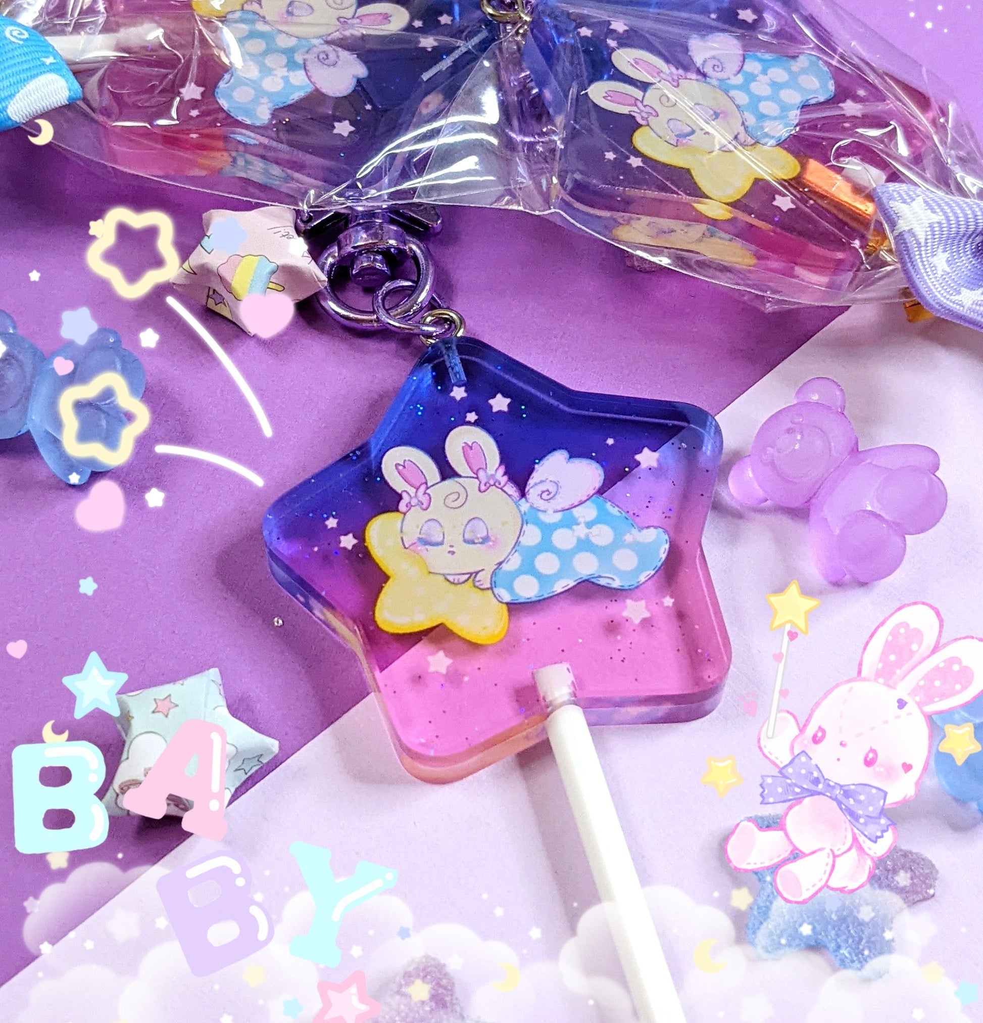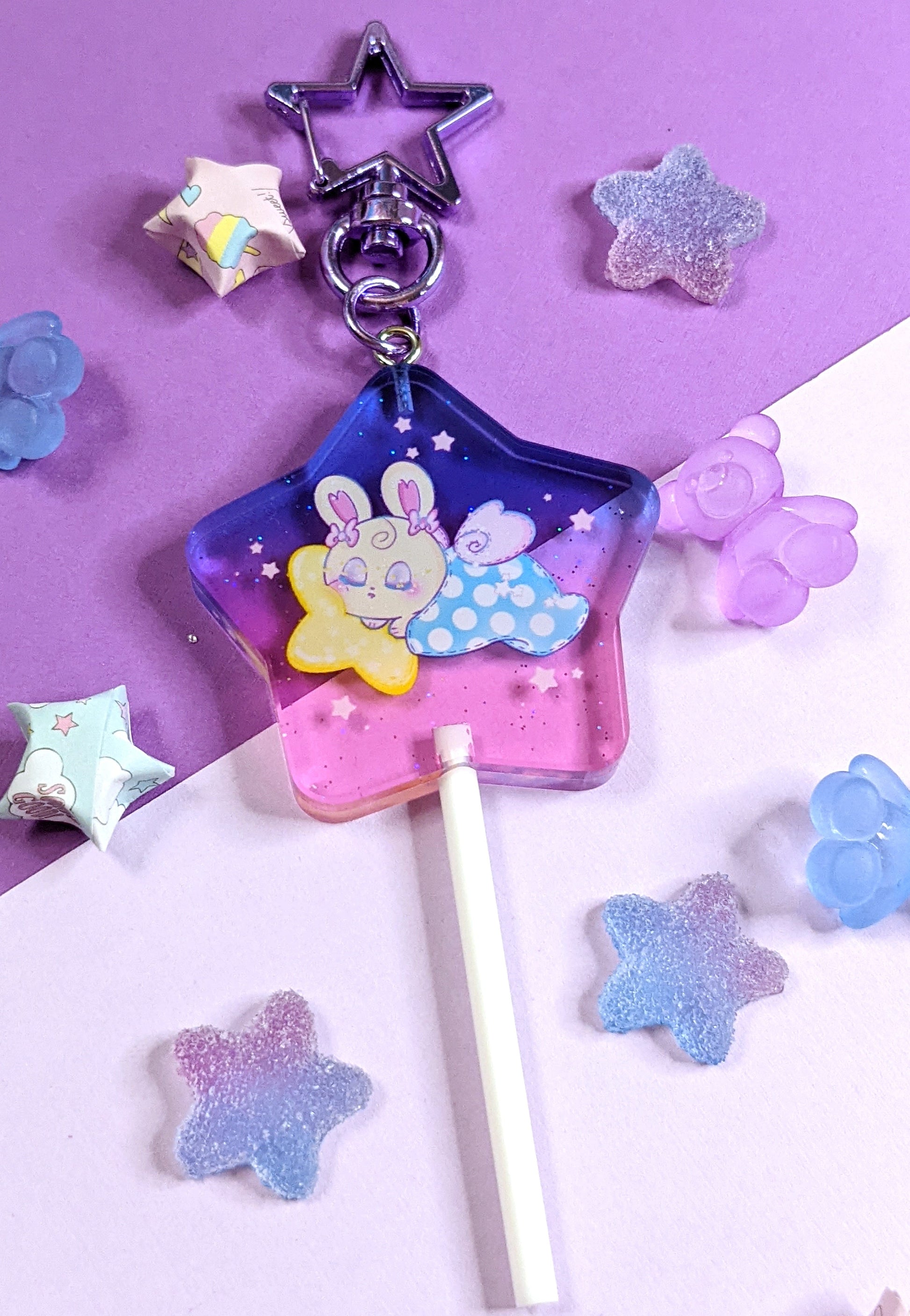Fruity Star Pops are made of acrylic with a little plastic stick to make it look just like a lollipop!