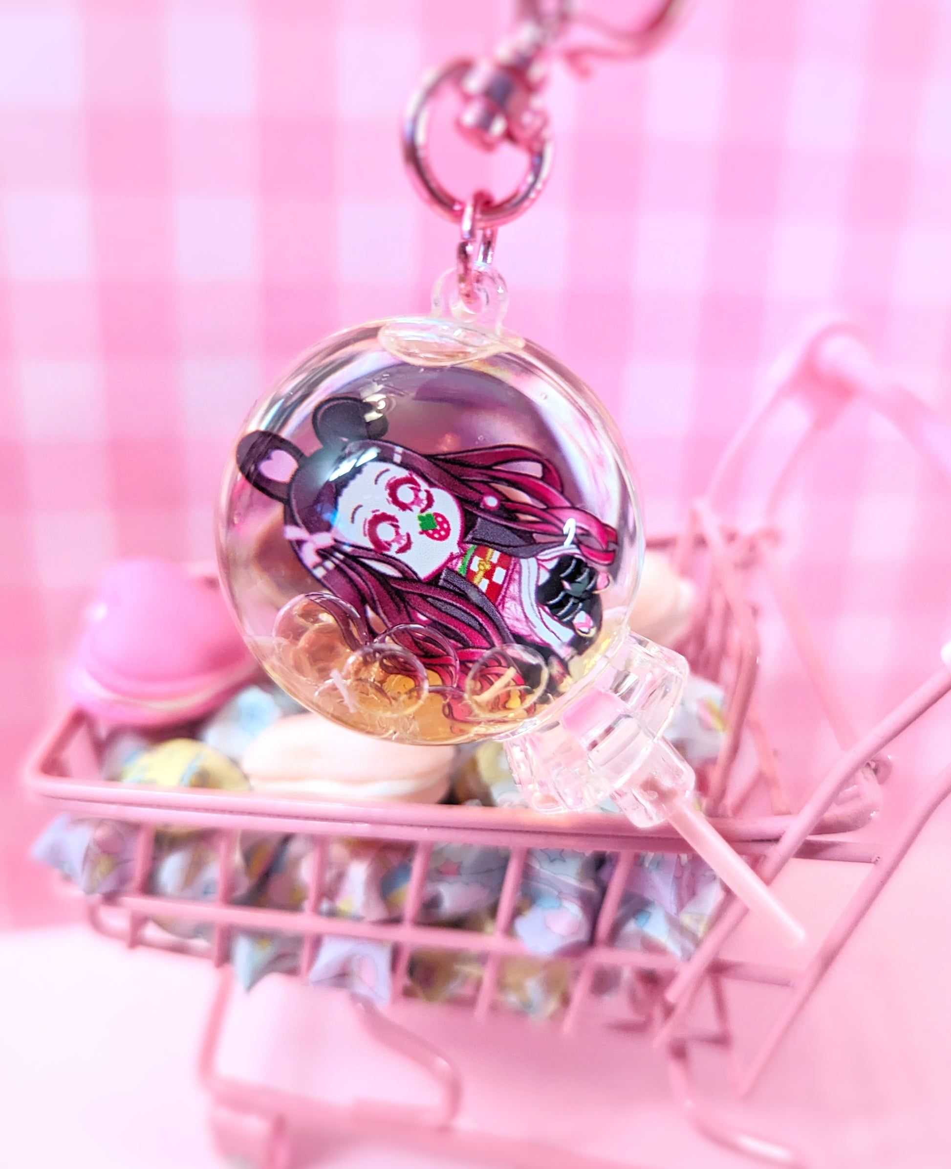 Everyone's favorite demon girl, in a cute lollipop shaped liquid charm!