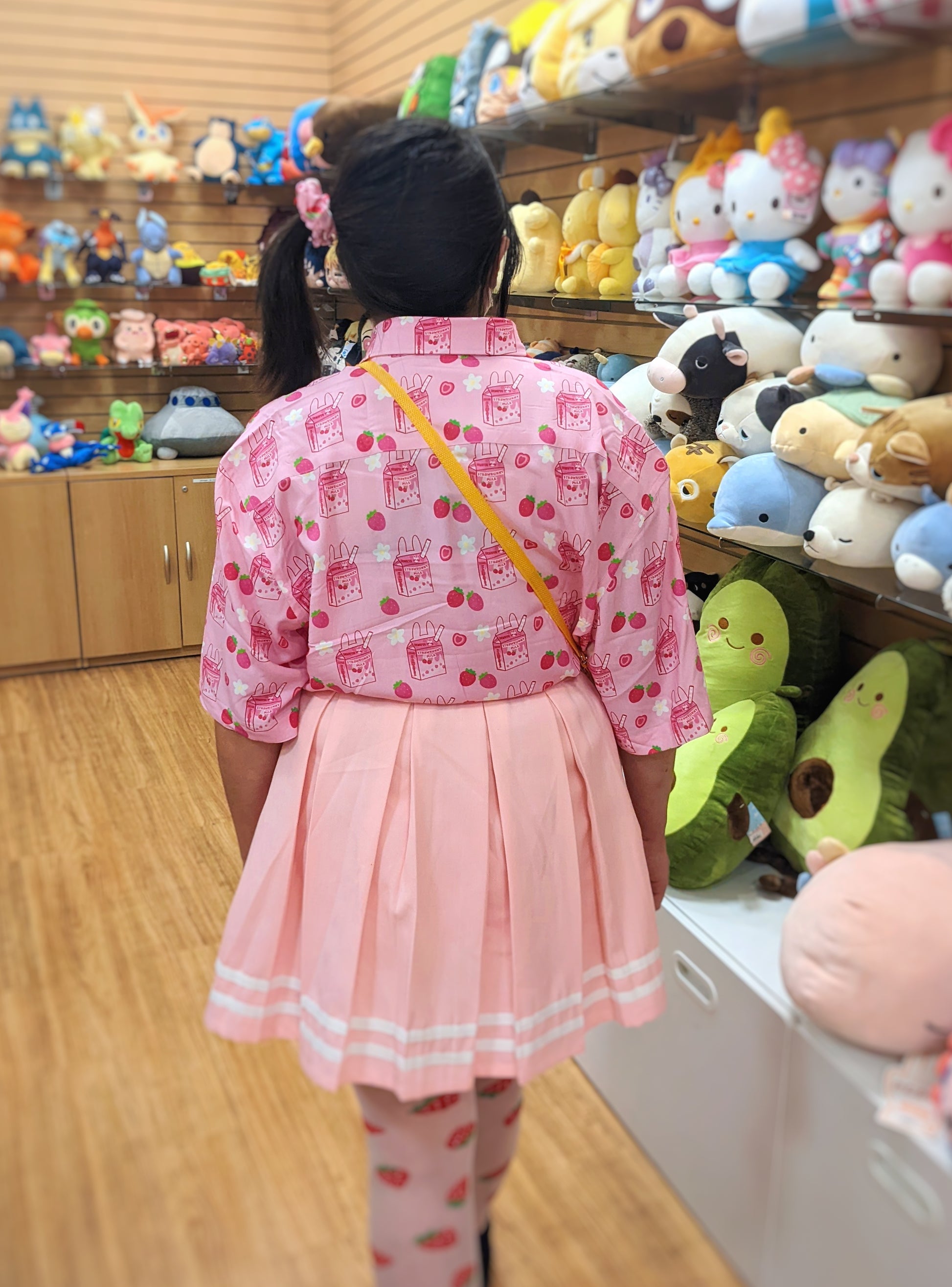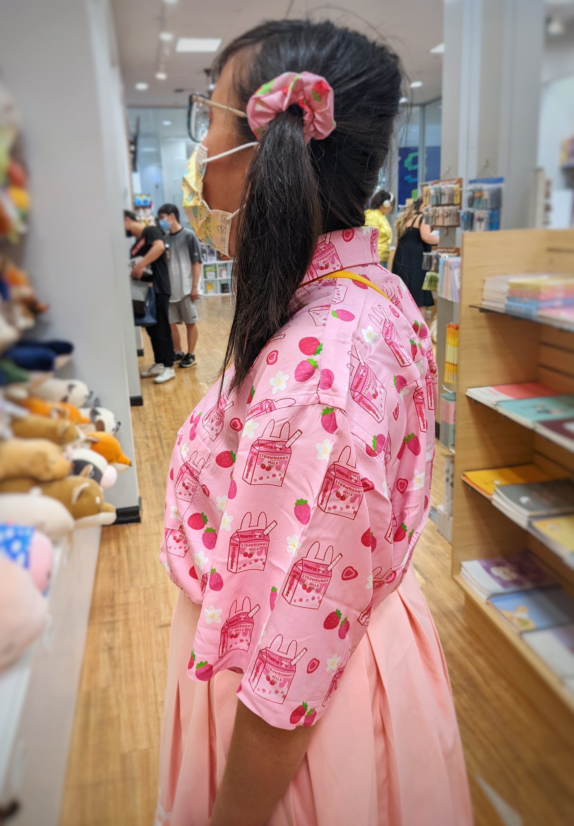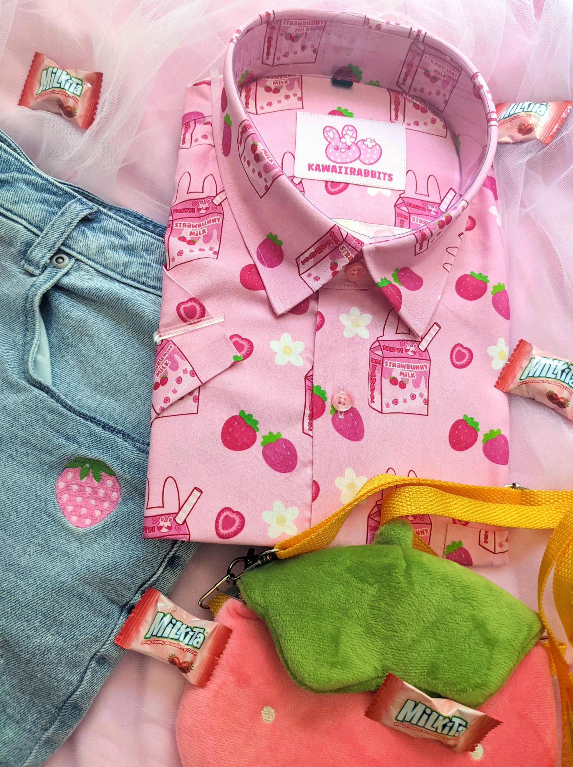 Newly updated strawbunny milk design now on printed button tees!