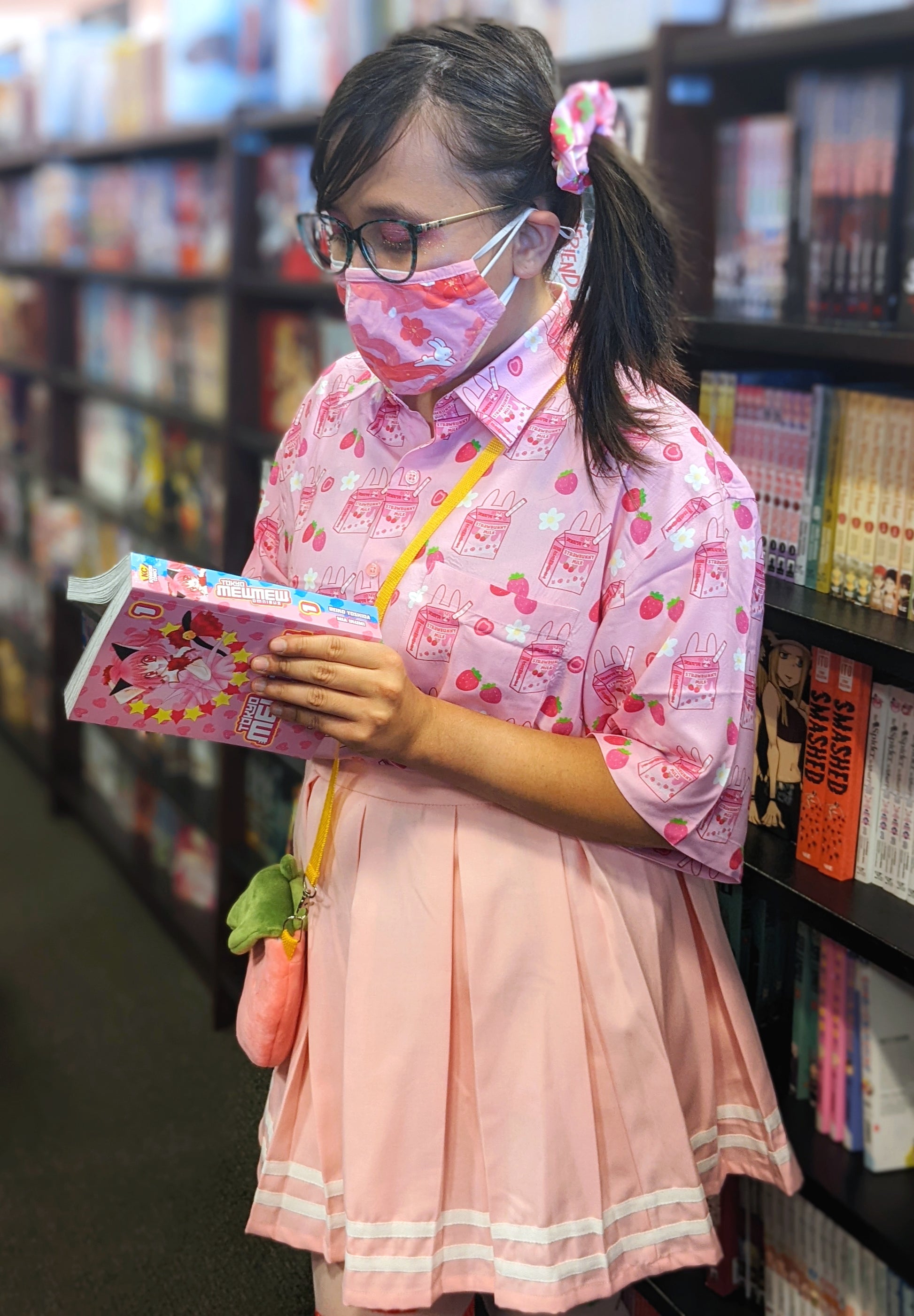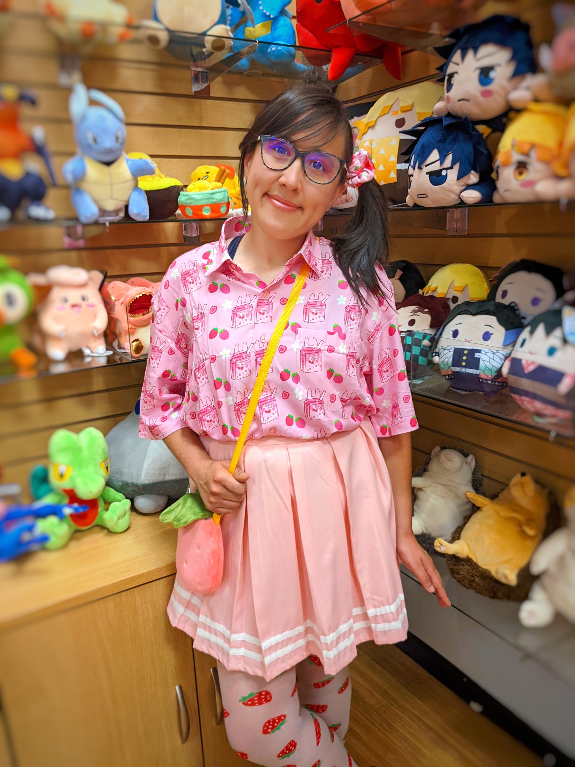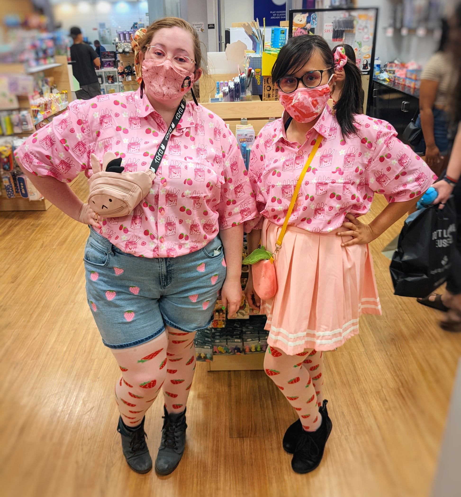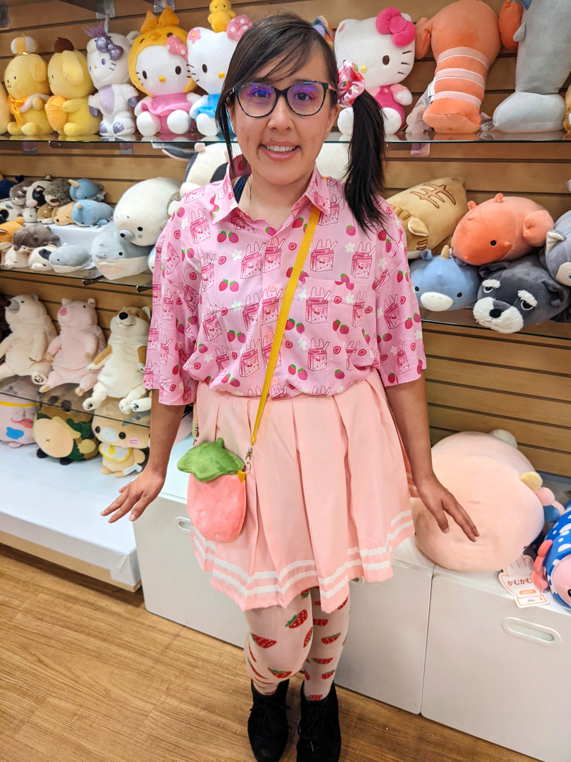 Newly updated strawbunny milk design now on printed button tees!