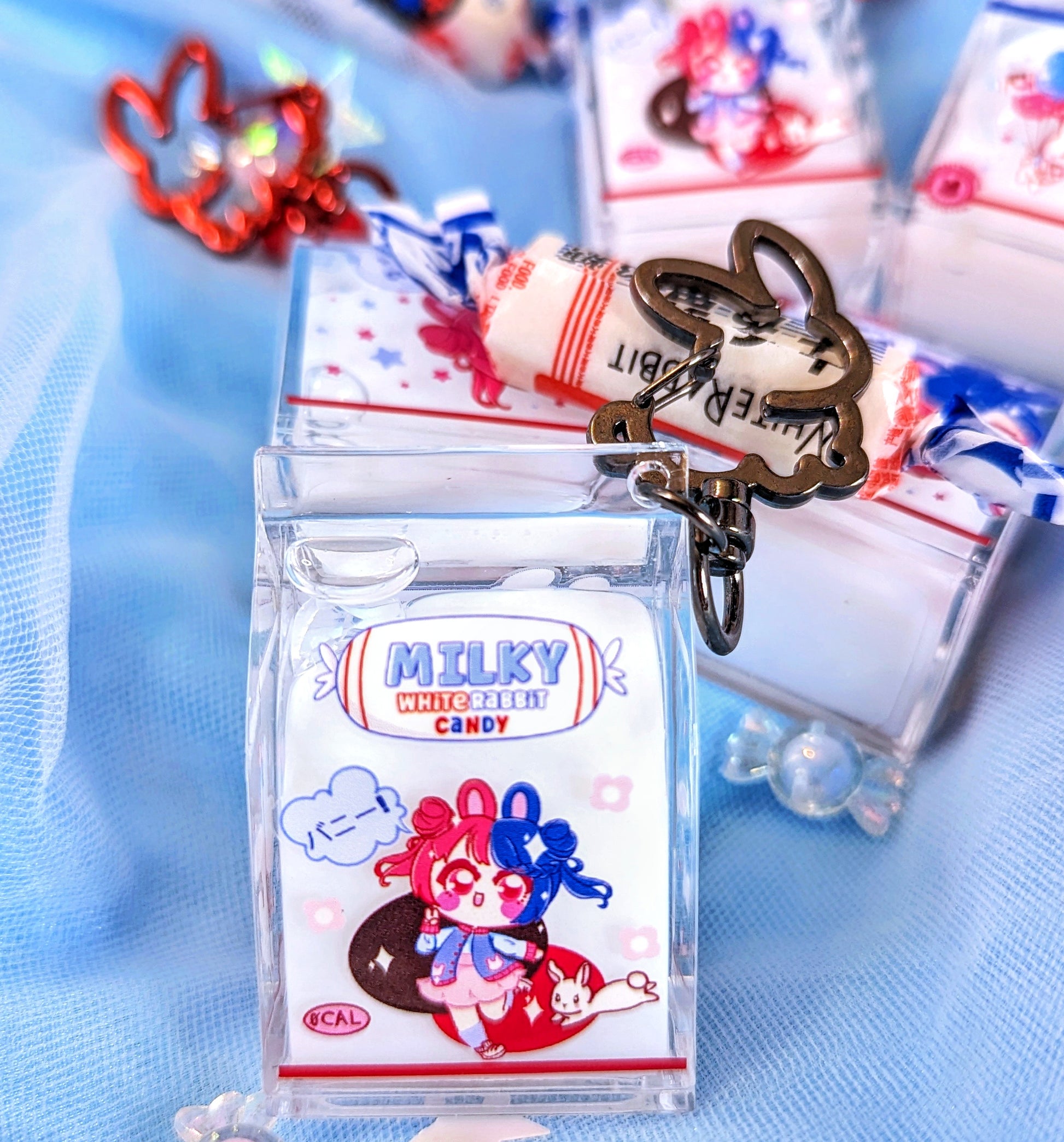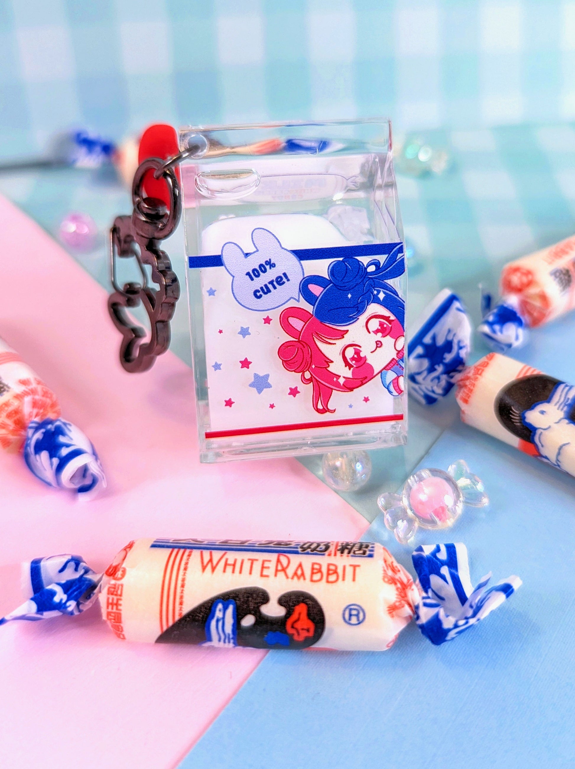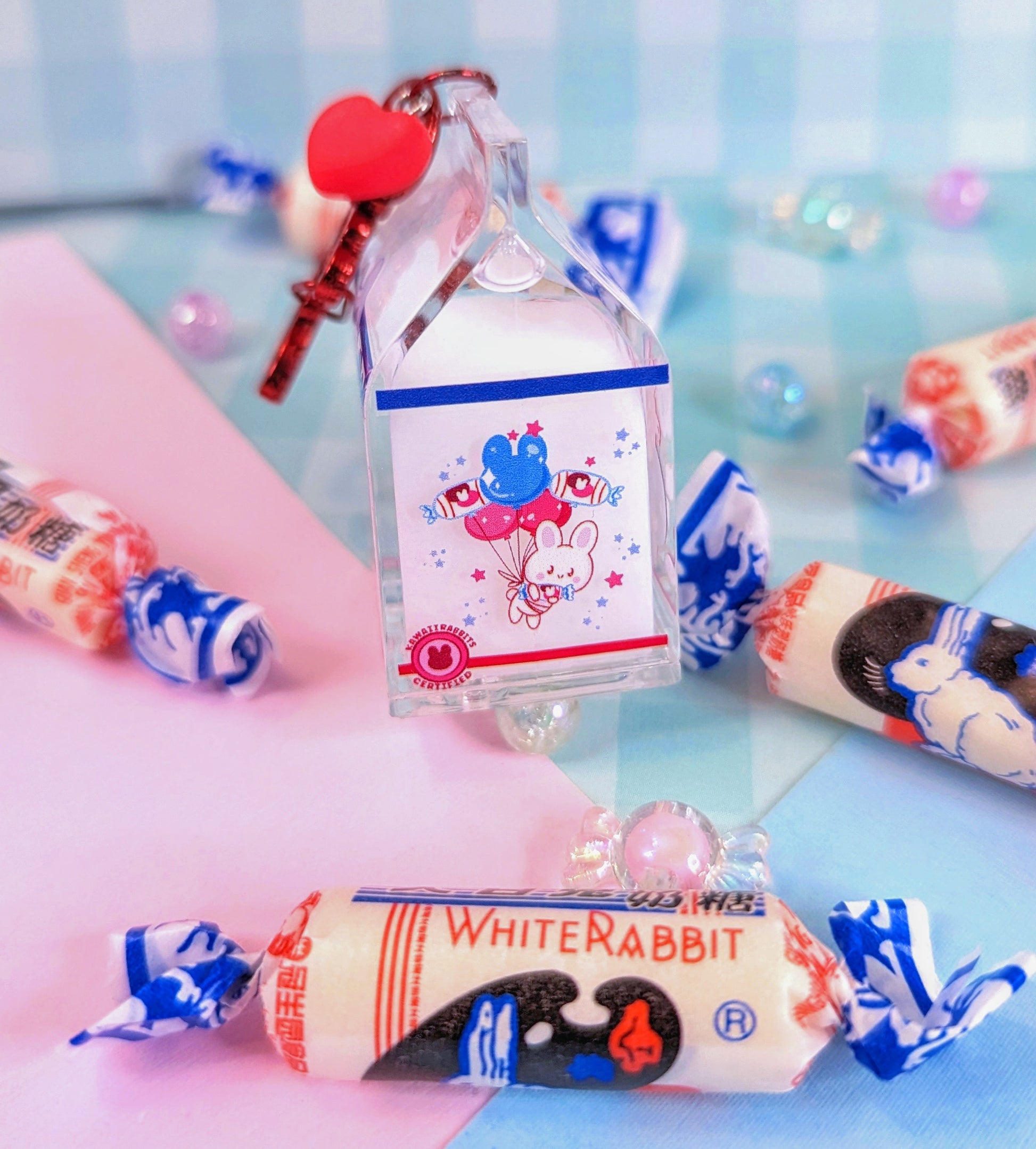White Rabbit Candy, Milk Carton Liquid Keychain