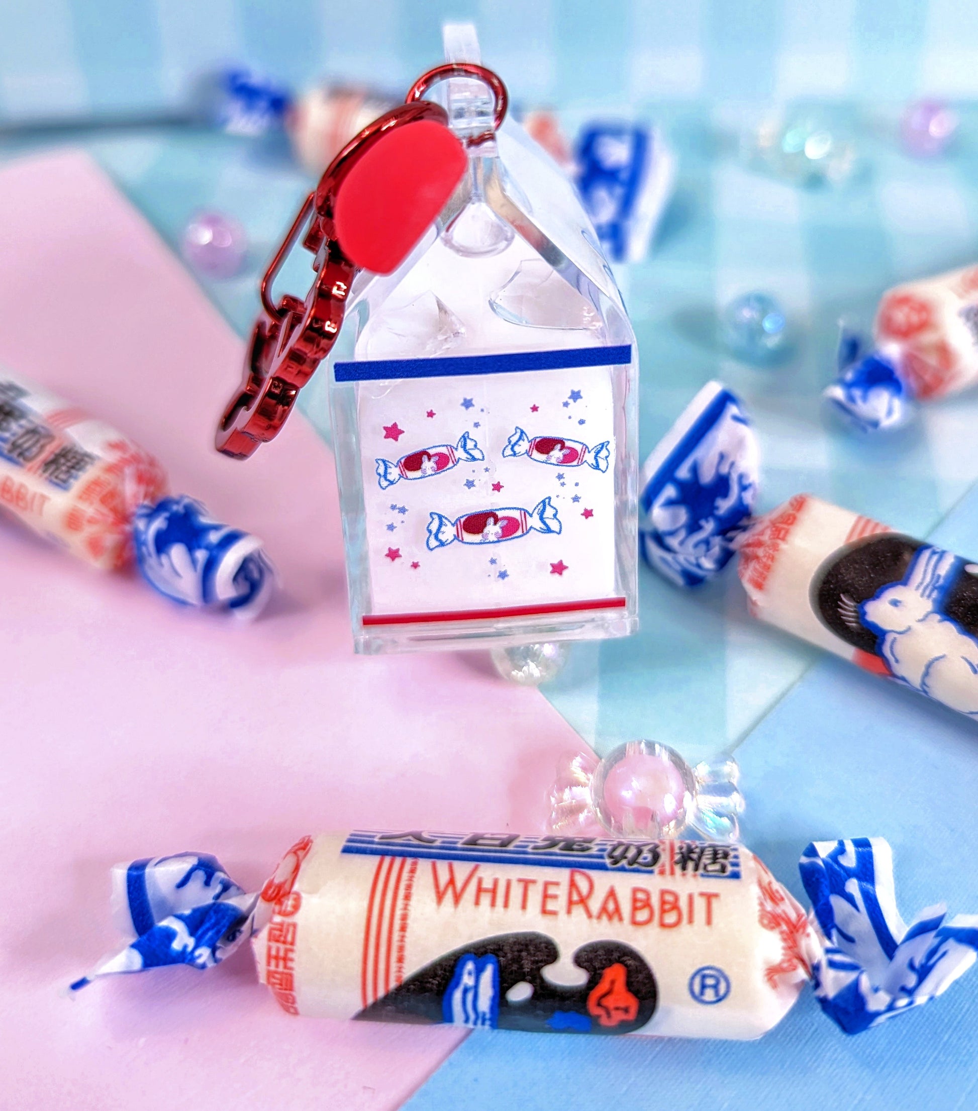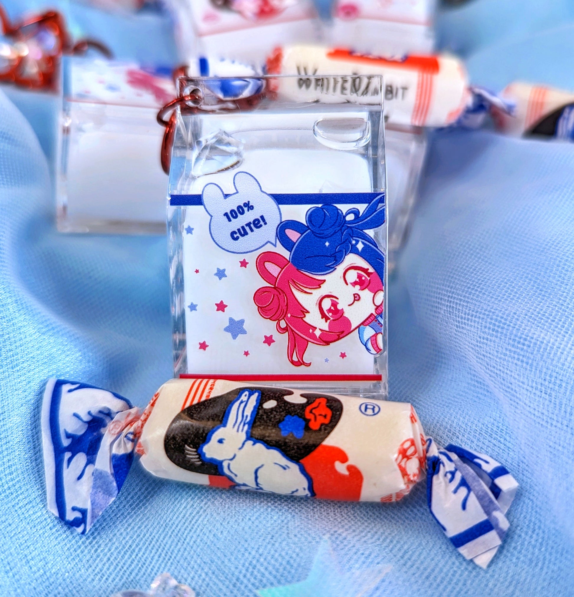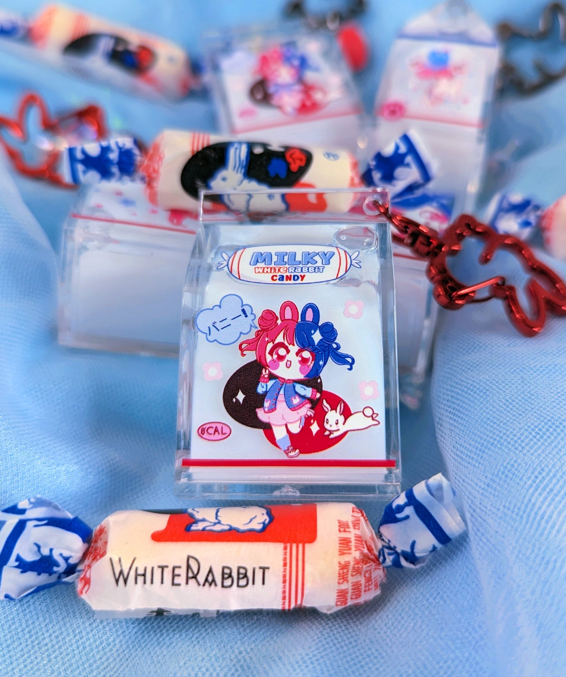 White Rabbit Candy, Milk Carton Liquid Keychain